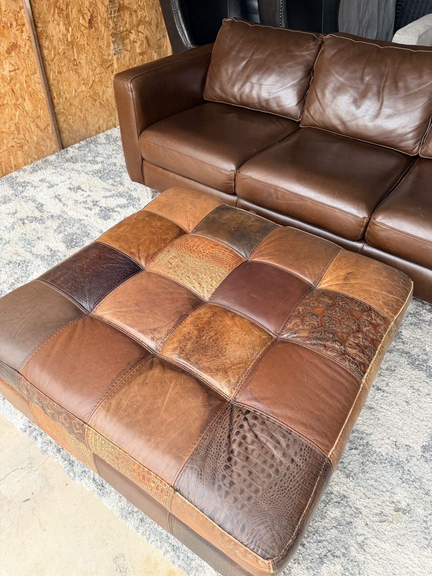 This is a Omnia Leather Mosaic bench ottoman. Excellent condition (D40x40"H17")