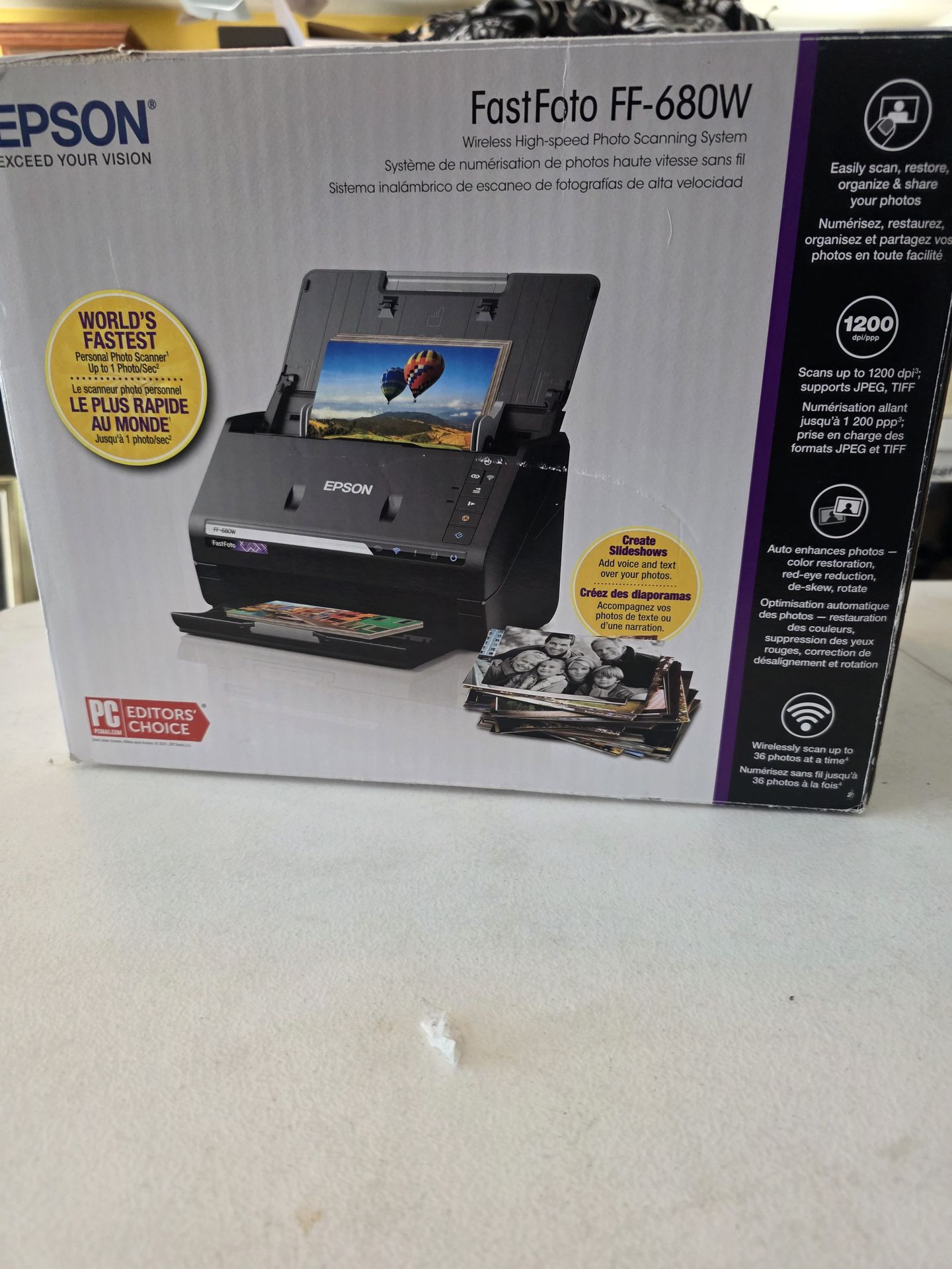 Epson FastFoto FF-680W photo/card scanner Used in box Wireless scanner. Perfect for scanning bulk cards Sports or tcg pokemon cards All cables included No cd-rom but you can download on epson website. New goes for $500+ Im asking $350 obo