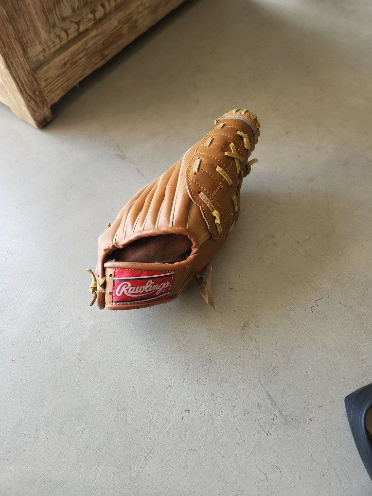 Kids baseball glove. Vintage and real leather! This item is soft when worn and leather in great condition. As seen in the picture it needs a minor repair because the leather that holds the fingers is undone.