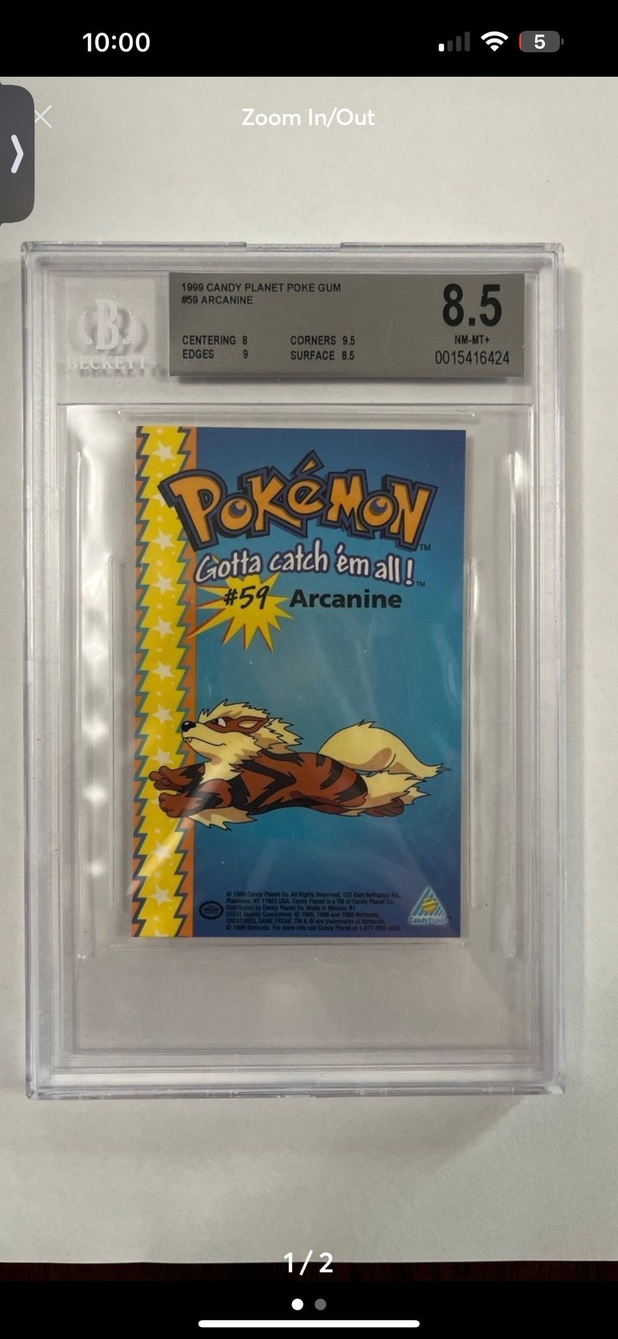 1999 Candy Planet Puzzle card #142 arcanine BGS 8.5 Pokemon
