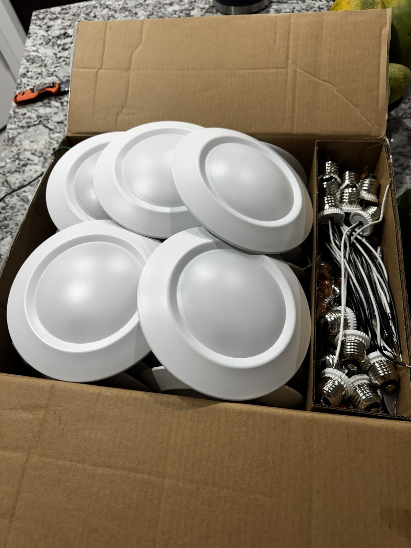 6” lights that were removed from a home as a different temperature light was installed. This is a normal yellow color when turned on. All fairly new with can style conversion pigtails.