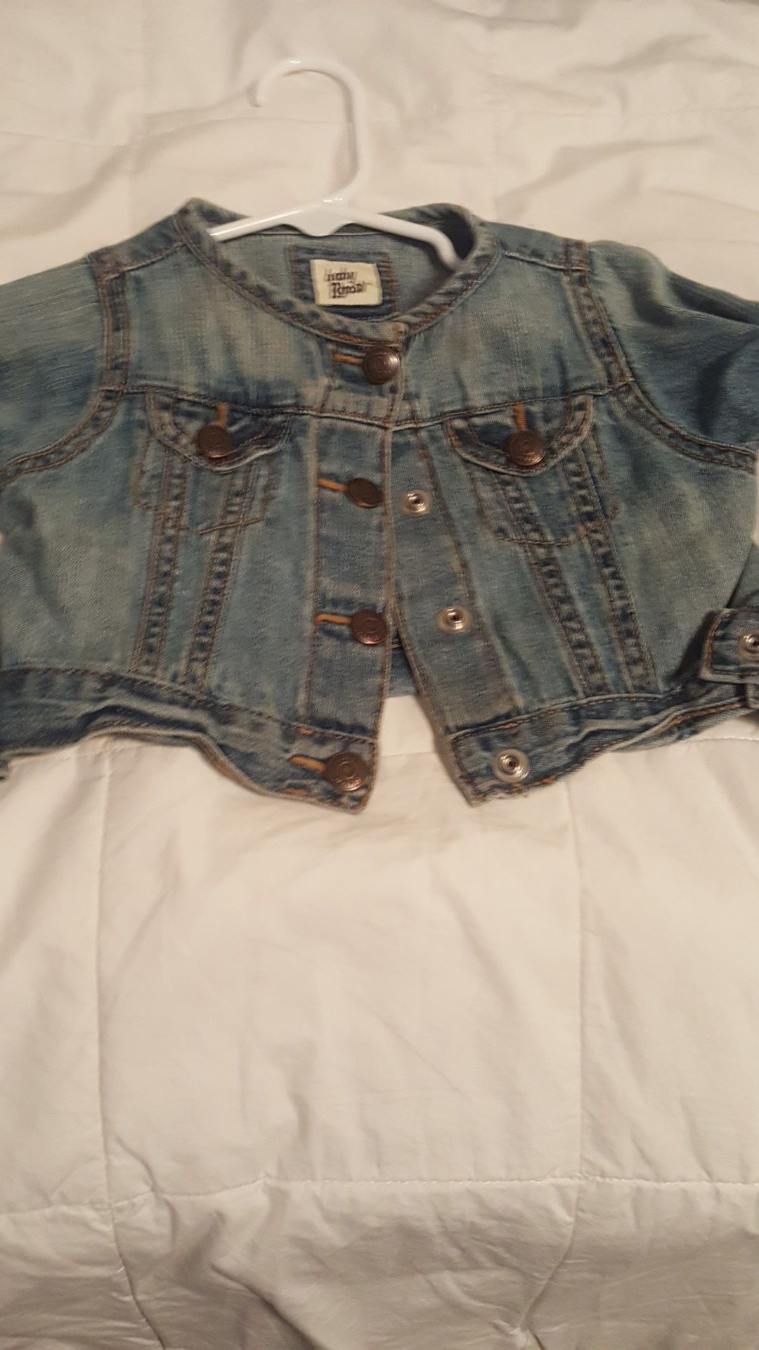 18 months denim jacket *but fit my daughter till she was 2yrs old so went from full size jacket to a crop jacket for dresses