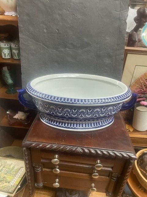 Large Blue And White Bombay Company Planter Flower Pot Orchid Holder Foot Bath