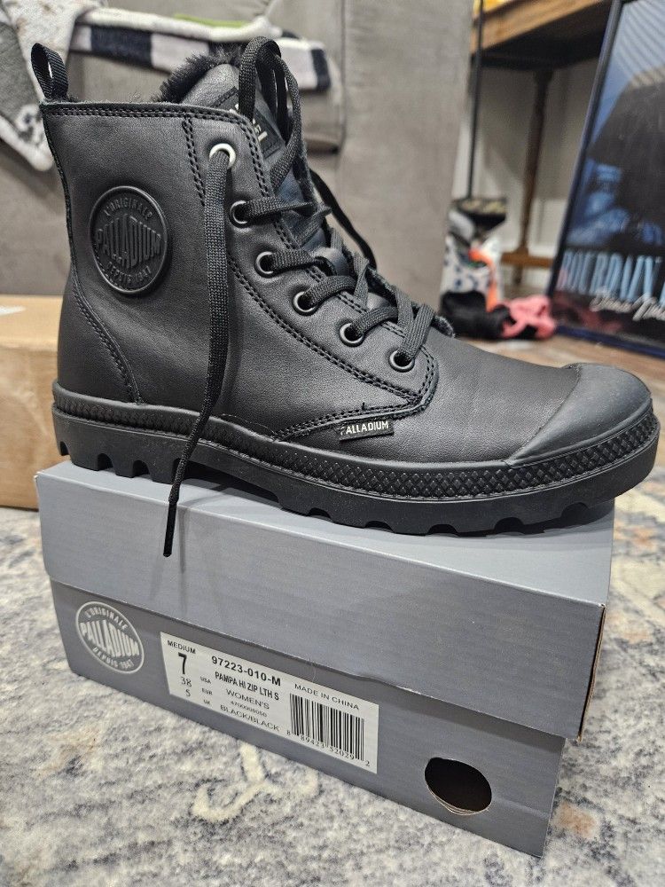 Never worn, brand new faux fur lined water proof Palladium Boots