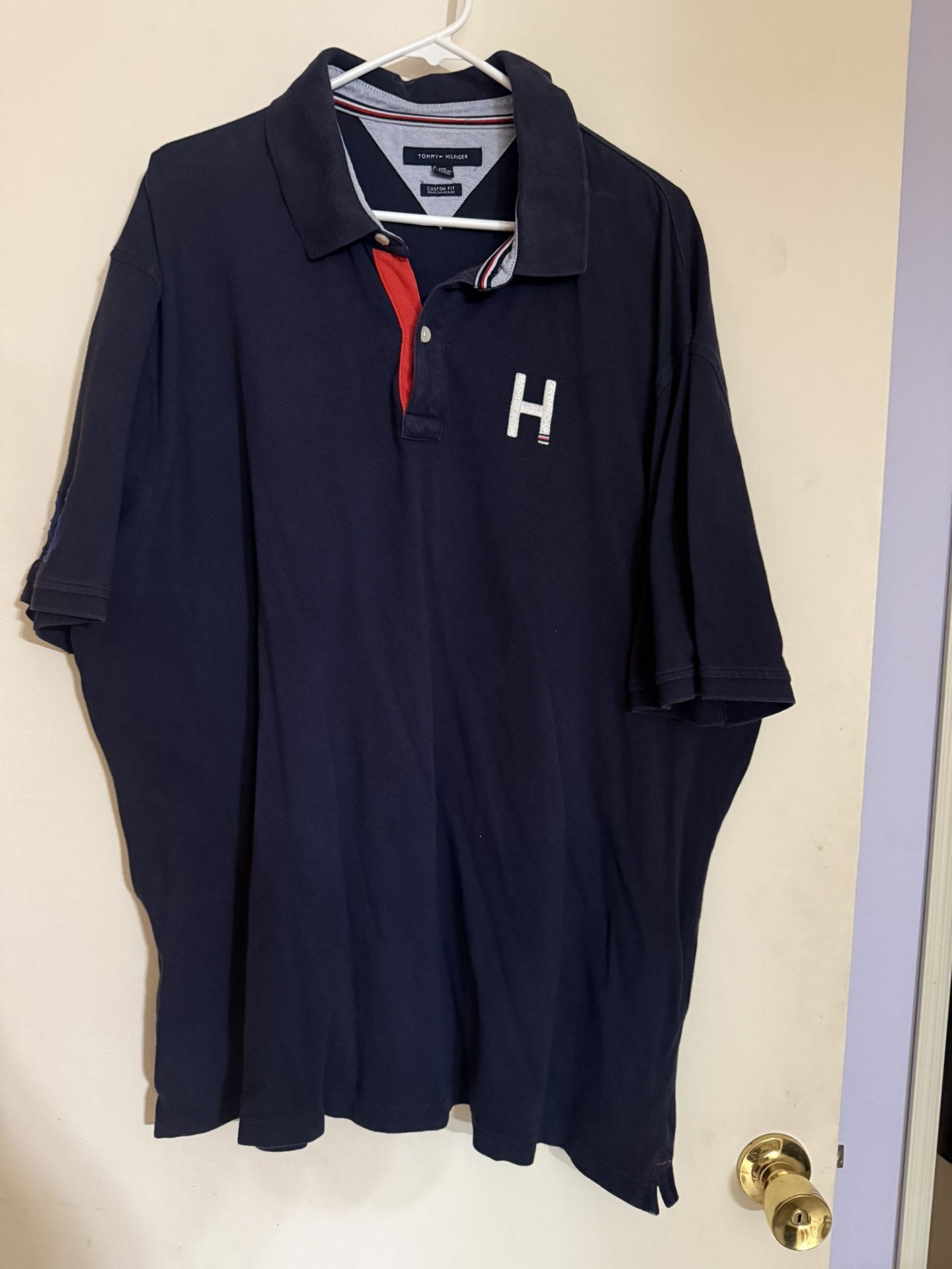 Tommy Hilfiger Polo shirt used Good. Blue. Size 3XXXL CHEST 26” 1/2 and Top to Bottom 31” 1/2