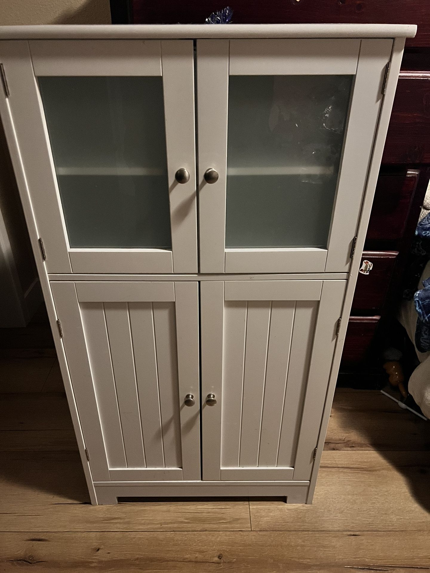 Small white storage good conditions Just missing (4) pins for the shelf $50