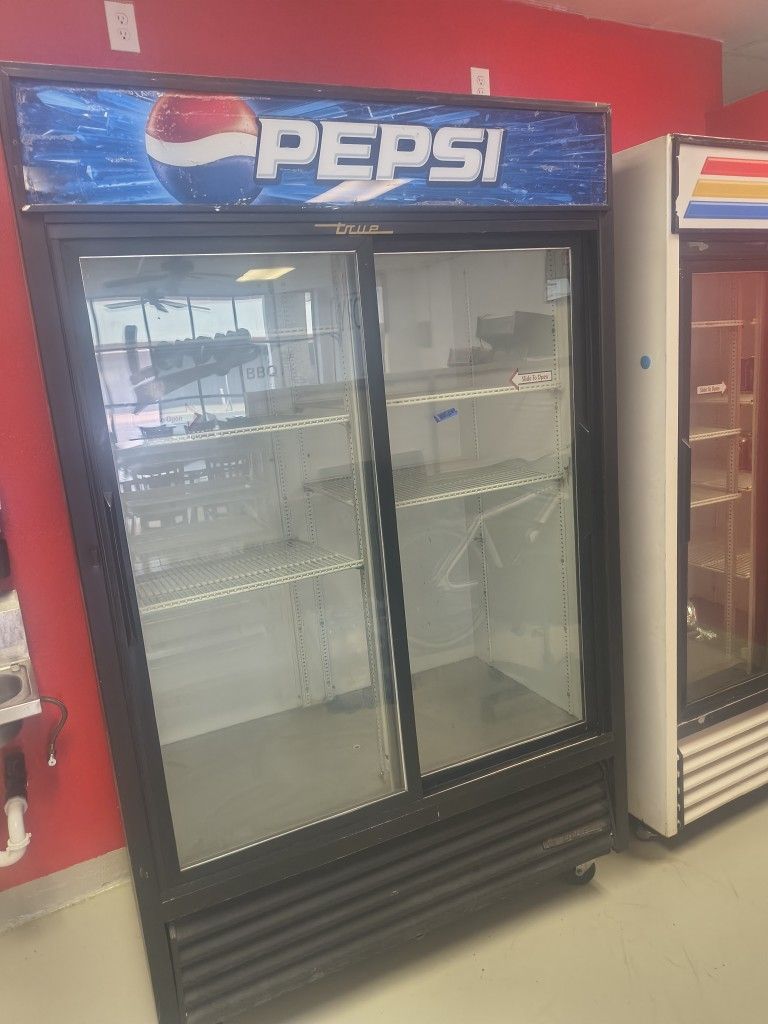 popular variant is the True GDM-45-HC-LD. Here are some general specifications for this type of unit: Type: Two-section, glass sliding door refrigerator merchandiser/display cooler. Capacity: Approximately 45 cubic feet. Dimensions (Approximate): Width: Around 51 inches Depth: Around 29 to 30 inches Height: Around 78 to 79 inches Features: Two sliding, double-pane thermal glass doors. LED interior lighting. Eight (8) adjustable shelves. Maintains temperatures typically between 33^{\circ}\text{F} and 38^{\circ}\text{F} (0.5^{\circ}\text{C} and 3.3^{\circ}\text{C}). Uses an environmentally friendly hydrocarbon refrigerant (often R-290). Bottom-mounted compressor