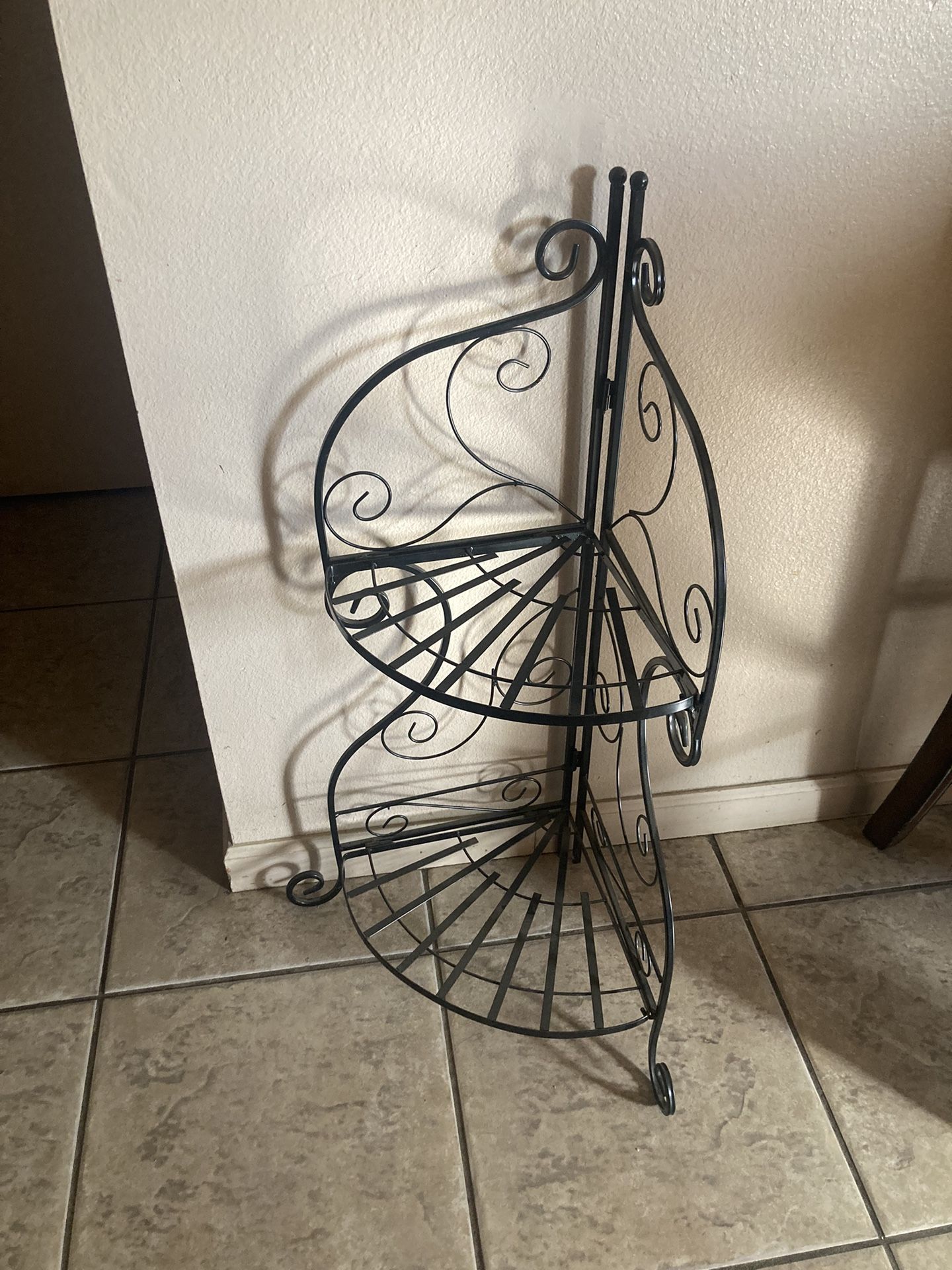 36 in tall 15.5 in width 15.5 length Metal stand/ shelf and folds apartn