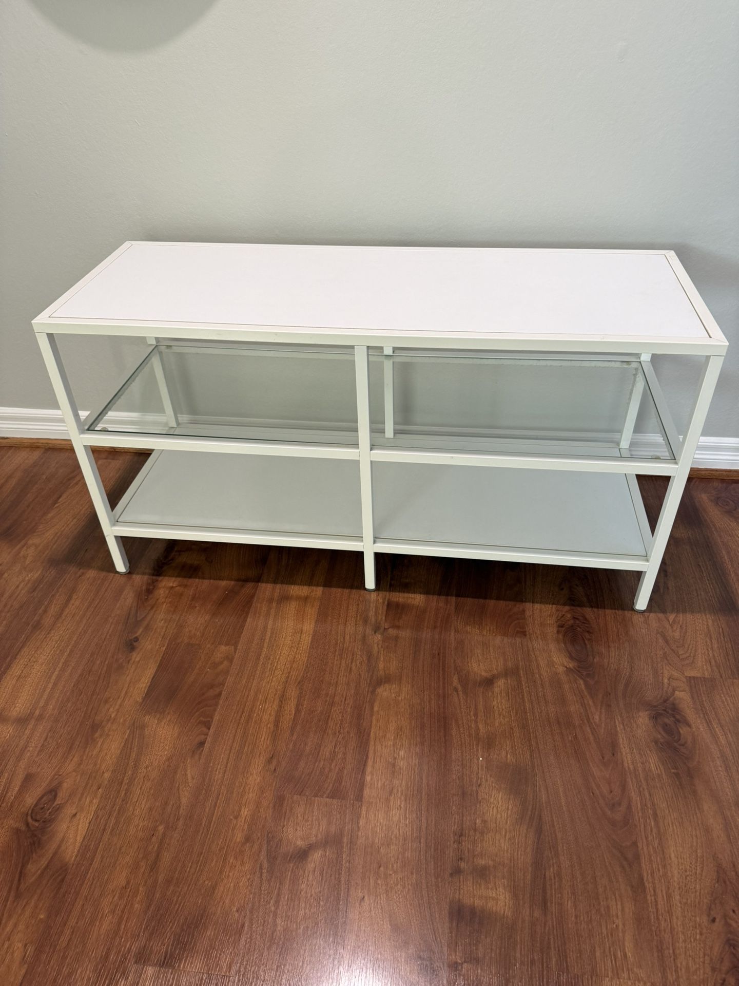 IKEA shelving unit / coffee table White metal with glass shelf. In great condition