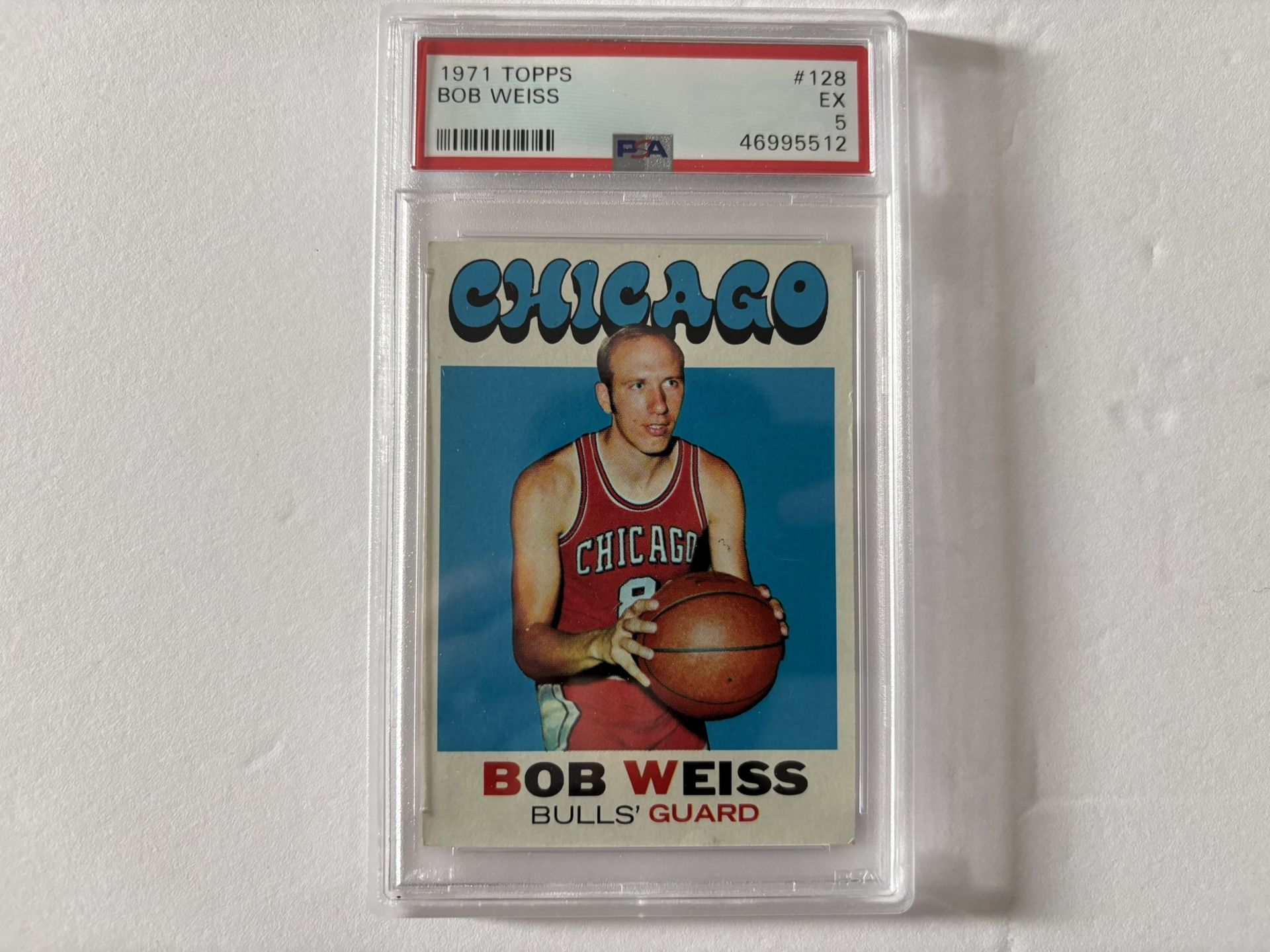 This is a 1971 Topps Bob Weiss basketball card. It is currently graded as a EX 5 by PSA. It has been left in this card case and is perfect for any NBA or sports card collector. The asking price is $15. Pickup or meetup are both options.