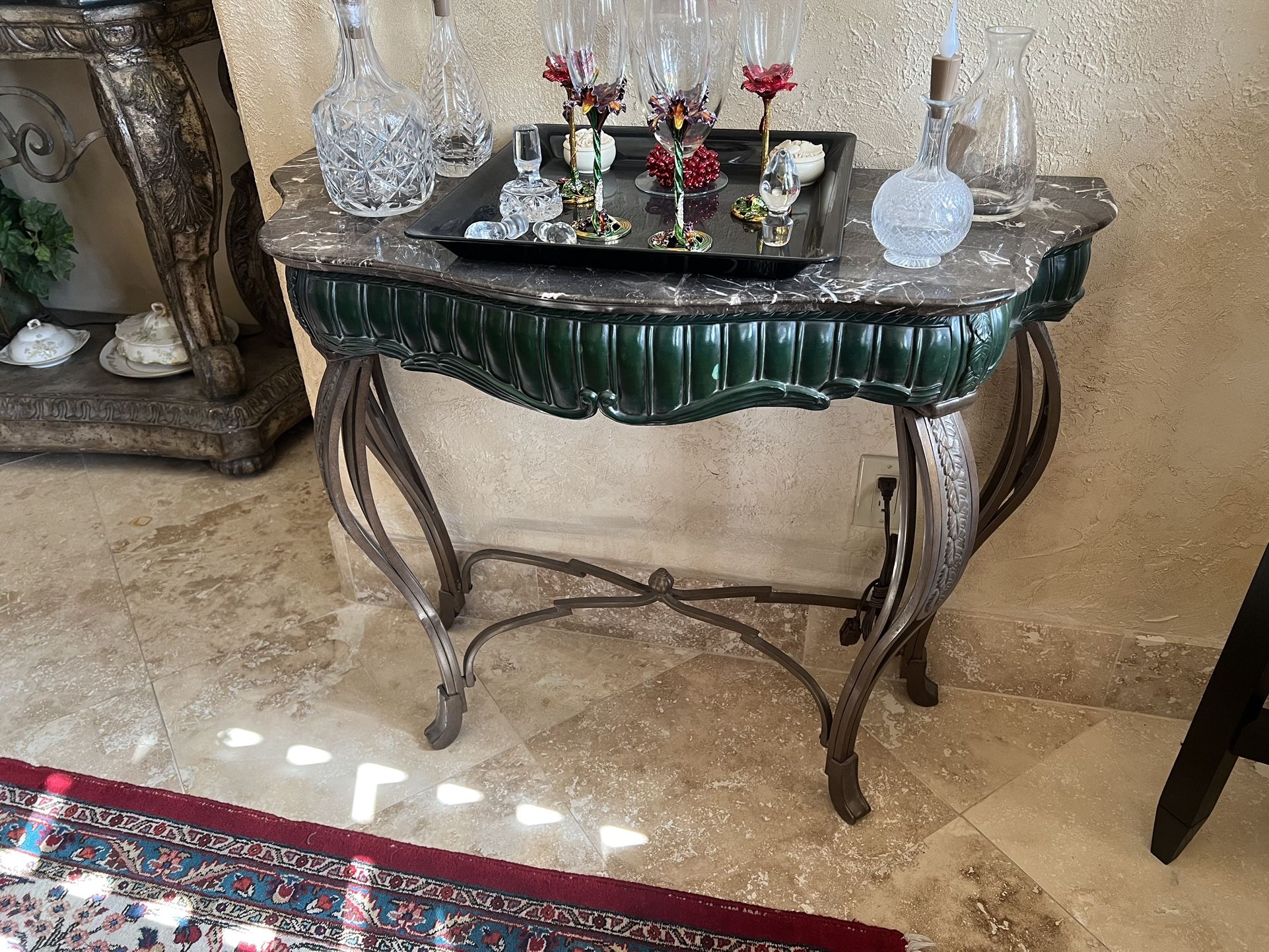 Beautiful piece. 38” long at longest back edge, 17” deep and 32” tall see my other offerings!