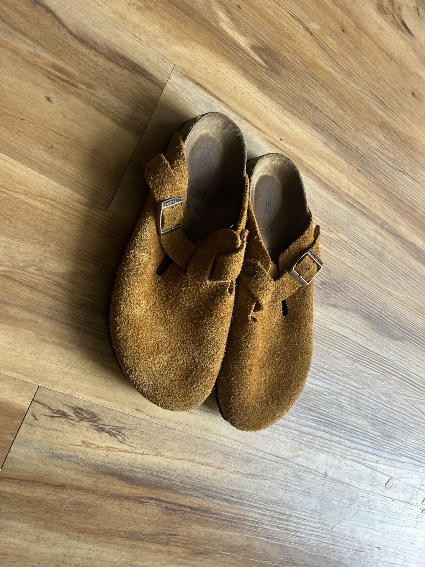 Hi! These are brand new Boston Birkenstock clogs in tan (with soft footbed, the best kind!). I have only worn them once. They’re like new. I hope they find a home for someone who loves birks. Size 39 (comparable to an 8 1/2 or 9 US).