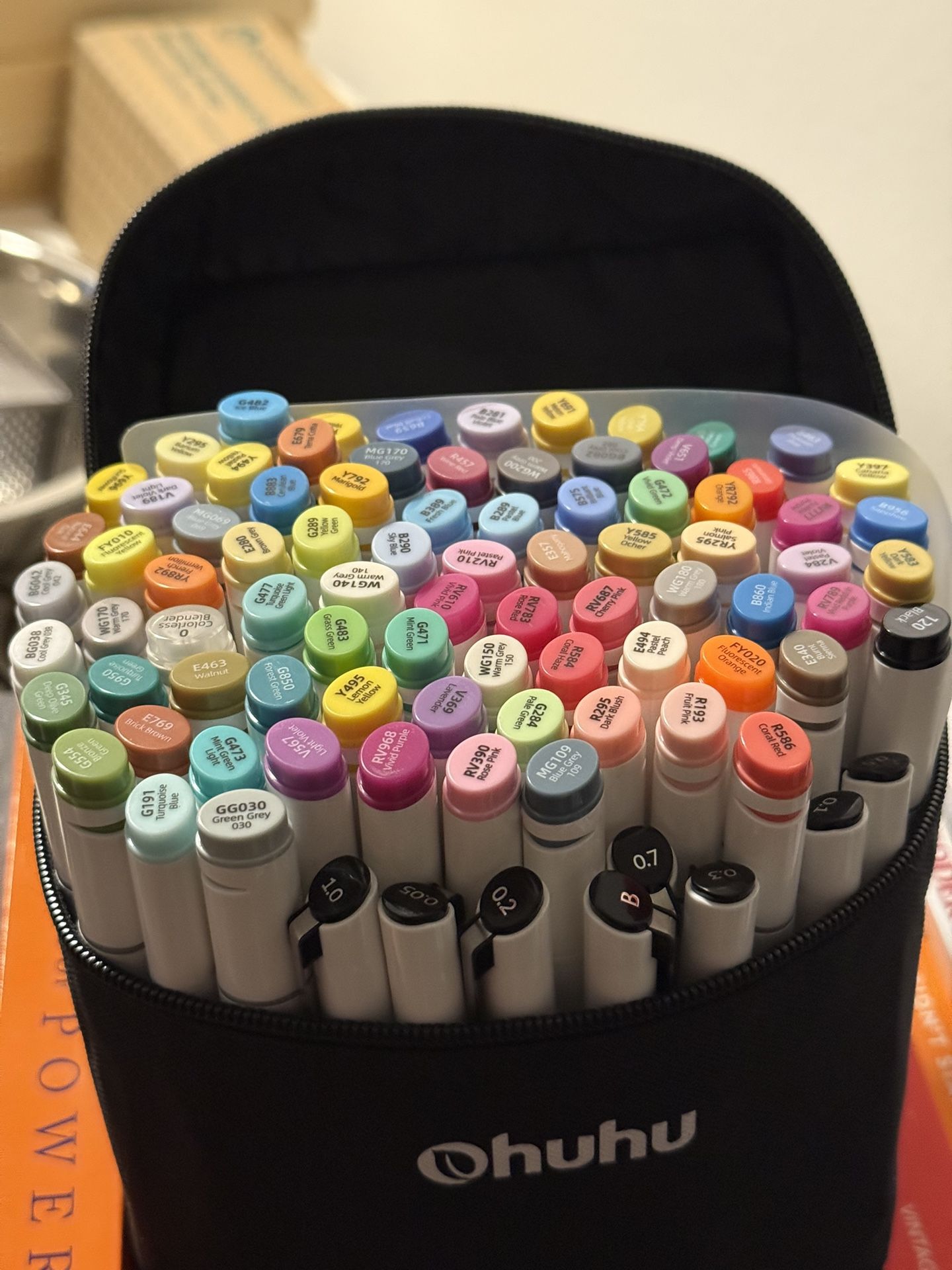Ohuhu brand, used only a few times, practically new and well-stored. Great for adult coloring books or a young artist.