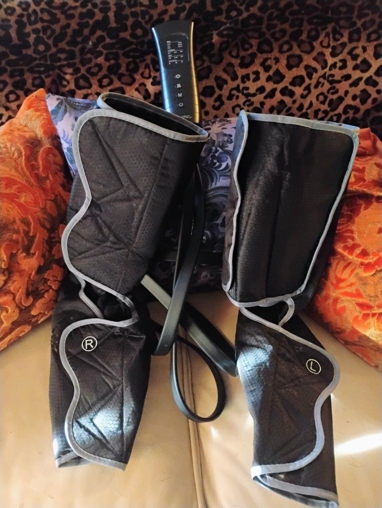 Compression boots that are heated and have several levels of heating. They also have several levels of vibration they are electric they plug in and they work great, they have left and right foot