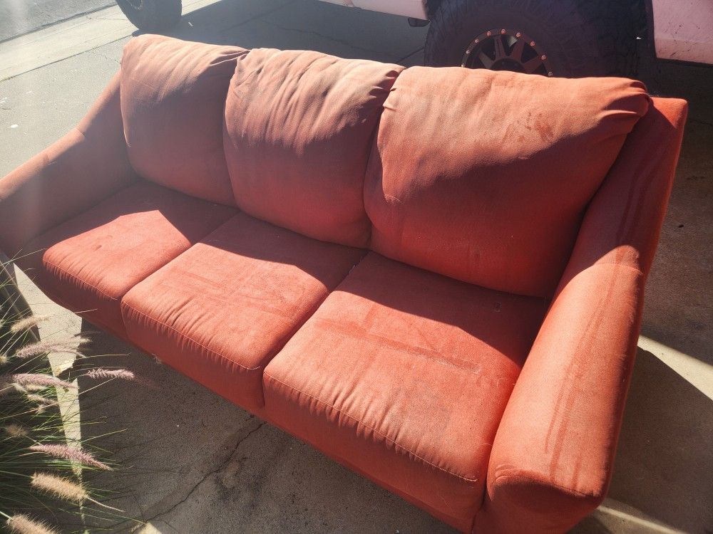 Free couch. Discolored from sun. Has pull out bed.