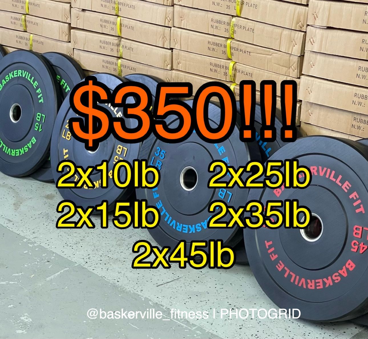 NEW 260lb set of Olympic Bumper Plates sealed in the manufacturer box