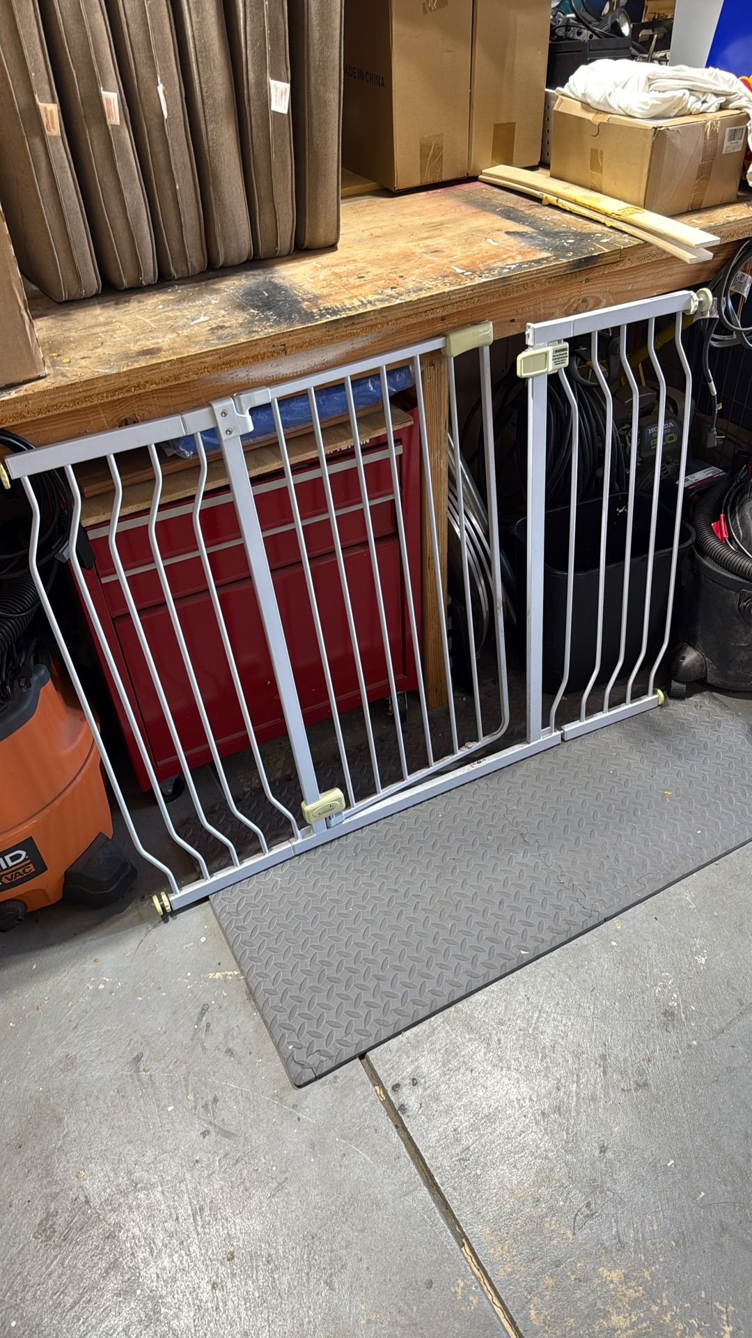 Large child or pet gate. Three feet high and four feet wide with gate.