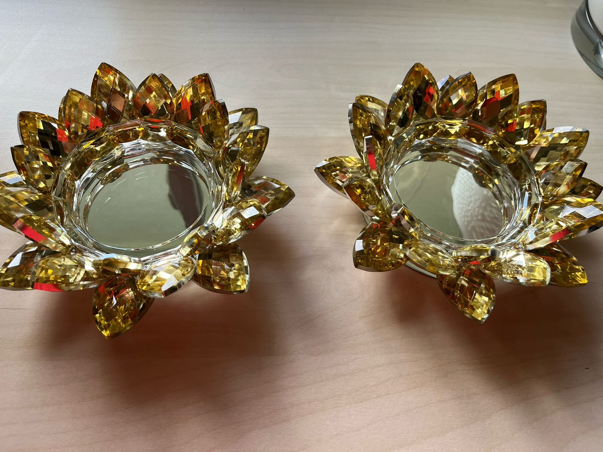 Brand New Never used, just for staging. Golden Faceted Glass Lotus Holder by Valerie (SET OF 2) 📌So Beautiful, Super sparkly! 📌Heavy well made 📌Smoke free home 📌Real faceted crystals and mirrors Can be used for pillar candles, candy dishes, jewelry holders, key holders and so much more. If your interested: CASH PICKUP WEST HILLS KNOXVILLE