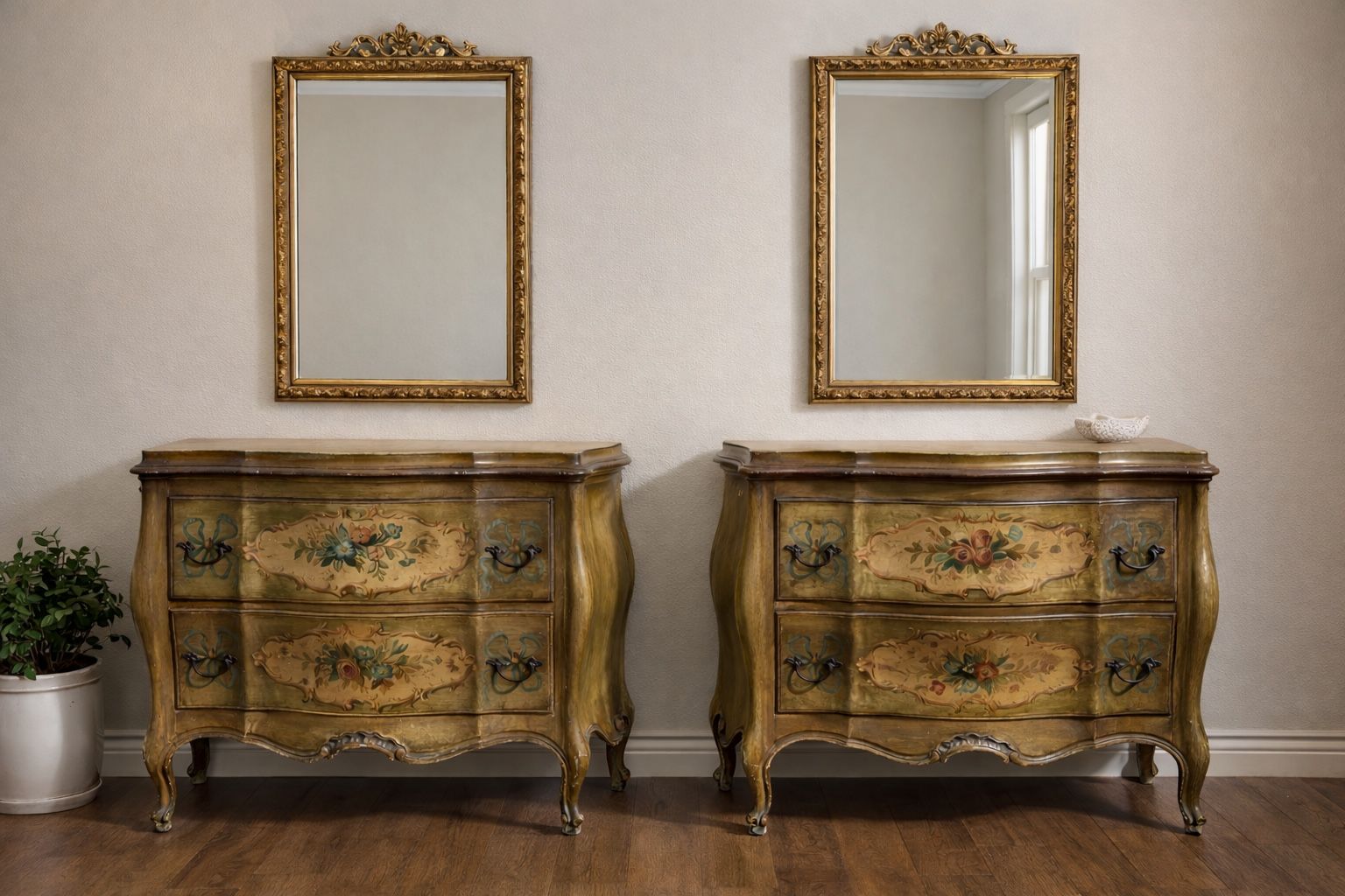 Vintage Hand-Painted Bombe Dresser / French Style Chest (Pair Of 2)