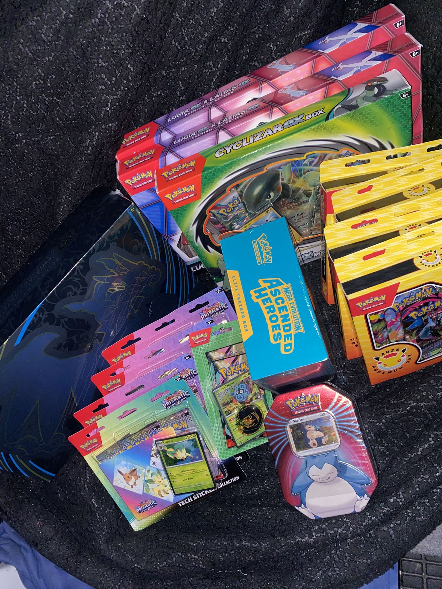 Mega Charizard EX UPC - $190 Lugia EX & Latias EX Premium - $83 Ascended Heroes ETB- $120 Mighty Mysterious Tin [Snorlax] -$89 Pokemon Day 2026 Collection - $30 Prismatic Evolutions Sticker [Glaceon] - $32 Prismatic Evolutions Sticker [Sylveon] - $32 Cyclizar EX Box - $36