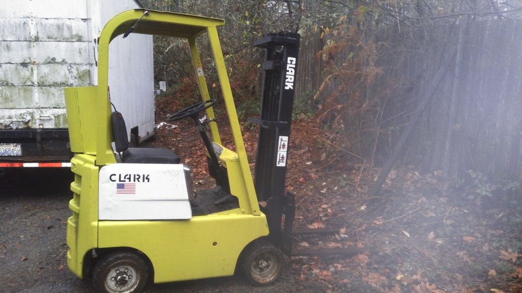 Clark forklift. 1980's. paint job done professionally with stickers. Runs strong on propane. Needs brake cylinder. Works good lifts 1,000. #