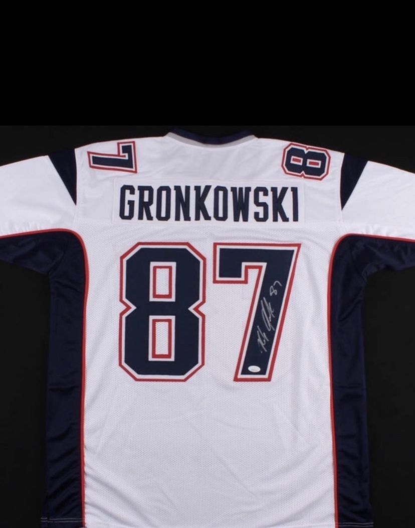 Rob Gronkowski autographed jersey, authenticated autograph with COA. Highly collectible jersey. New England Patriots Super Bowl Champs Other jerseys and collectibles also available Amari Cooper Raiders Home jersey autographed Dennis Rodman Jersey autographed and framed , Todd Gurley LA Rams Jersey autographed and framed !