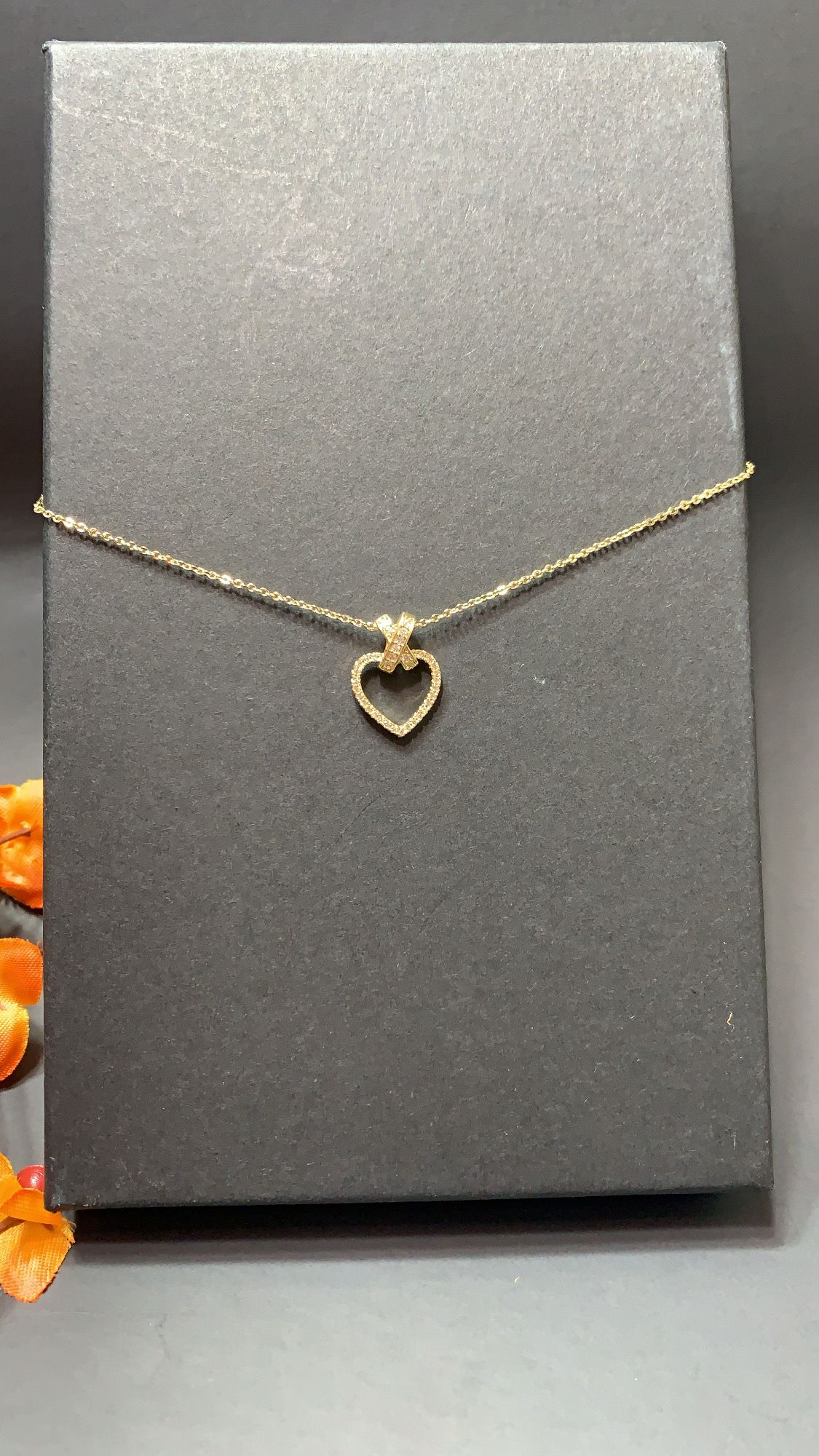**NO FADE** Real Gold Plated Rhinestone Heart Pendant Necklace, Gold Color