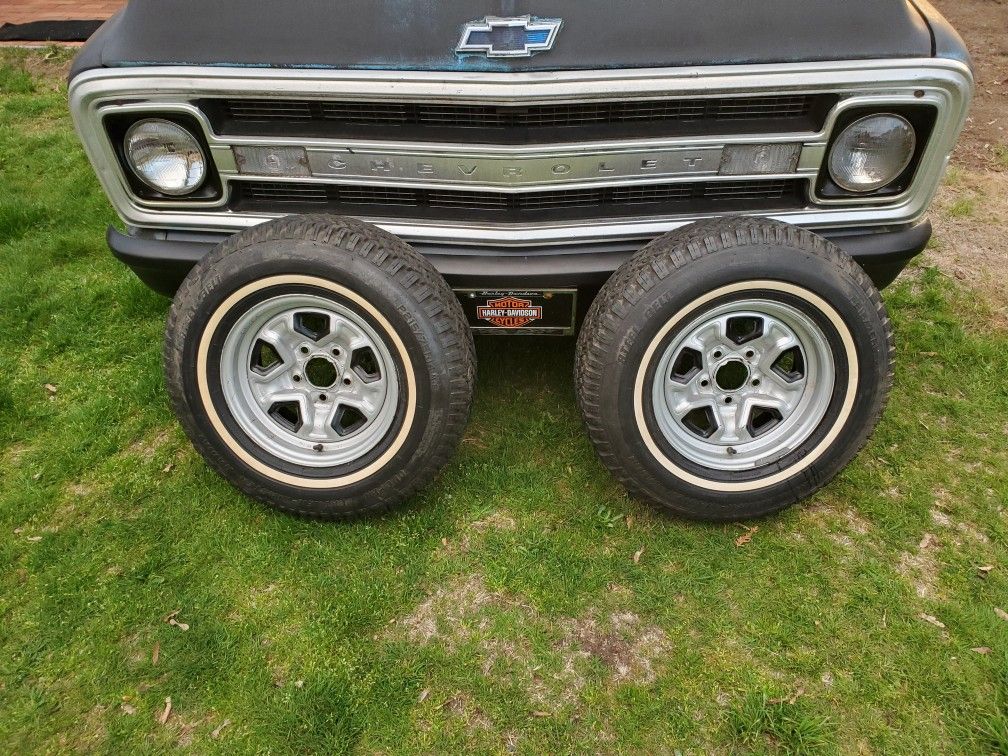 2 GM SNOW TIRES RALLY WHEELS 14" BOLT PATTERN 14X7 5X4.75 VERY GOOD CONDITION NO CENTER CAPS SNOW TIRES 215/75/R14