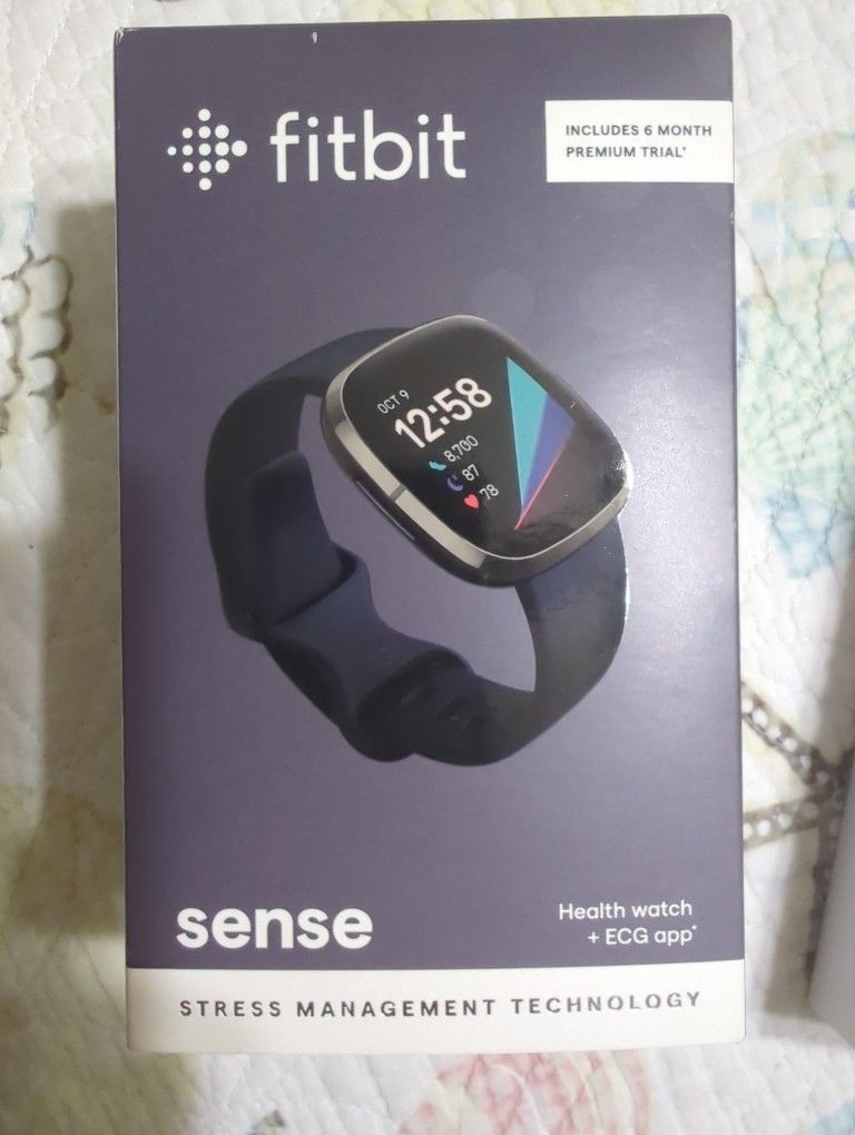 Fitbit Sense 100% working condition Charging cable 2 extra wristbands 5 screen protectors Original retail box The advanced health smartwatch that helps you tune in to your body with tools for heart health - stress management - skin temperature & more. Activities Tracked:Activity, Calories Burned, Distance, Heart Rate, Sleep, Steps Band Material:Silicone Battery Technology:Lithium Polymer Body Material:Aluminum, Stainless Steel Color:Black, Gray, Silver, White Connectivity:Bluetooth, Wi-Fi Depth:0.5 in Display Type:Color