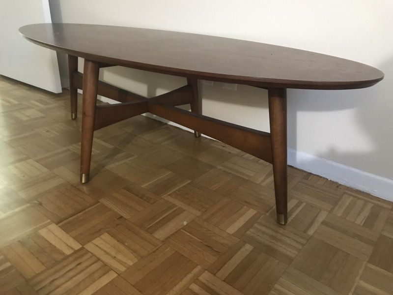 2 years old- in good condition. Paid 499, asking 60 https://www.westelm.com/m/products/reeve-coffee-table-oval-pecan-h718/