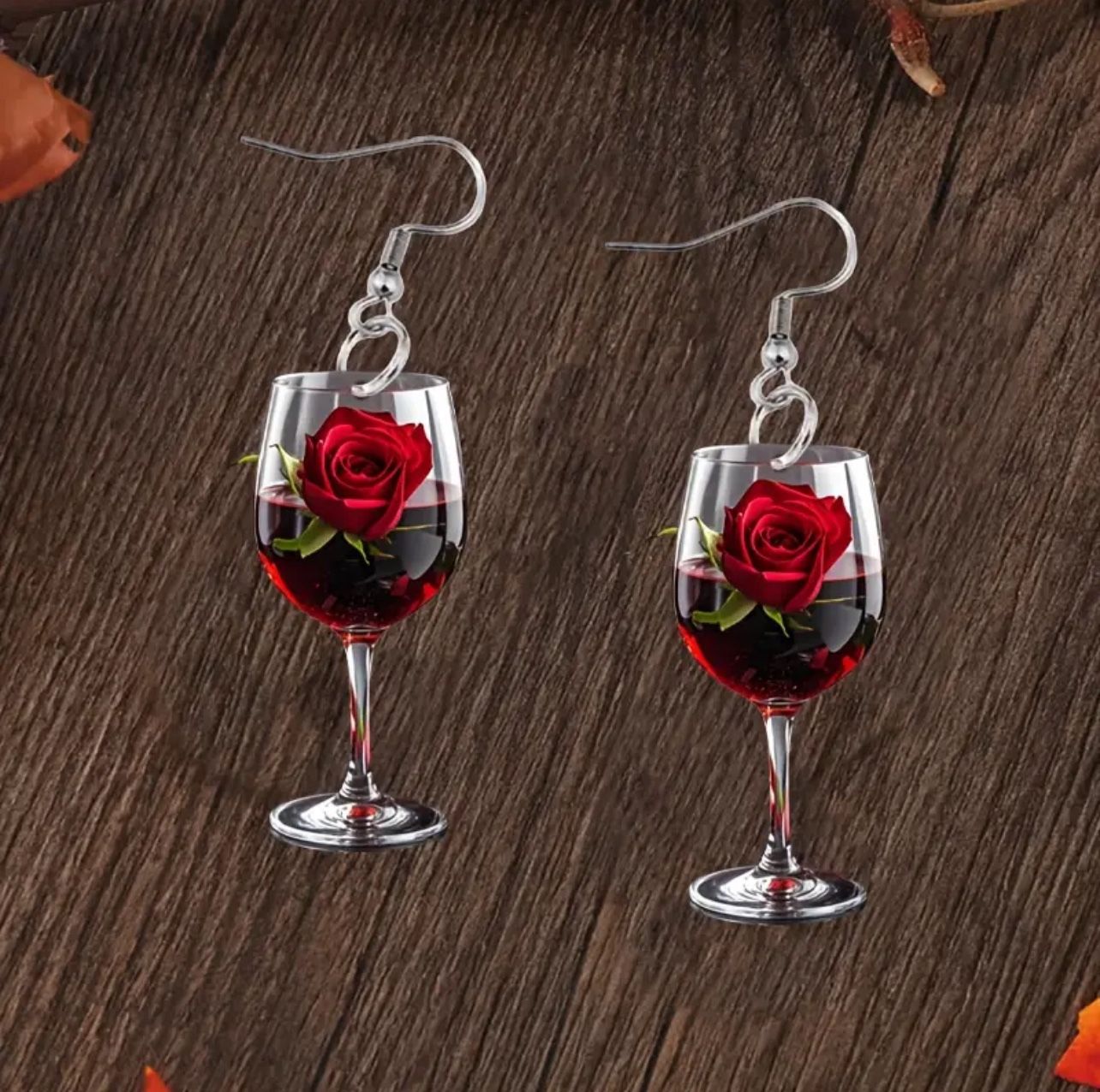 Elegant wine and roses acrylic 2D earrings