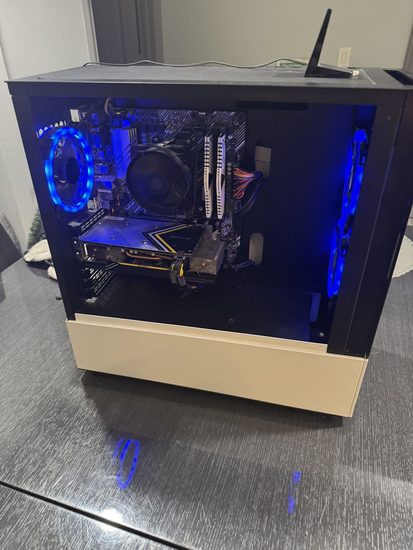 Specs: • CPU: AMD Ryzen 5 3600 (6-Core / 12-Thread) • GPU: NVIDIA GTX 1660 Super 6GB • RAM: 16GB DDR4 (dual-channel) • Storage: 500GB SSD • Wi-Fi: Built-in w/ antenna • Case: CyberPowerPC Mid-Tower (white/black w/ tempered glass & RGB fans) • Cooling: 3x Blue LED fans + AMD stock cooler • OS: Windows 10 Home (fresh install, activated