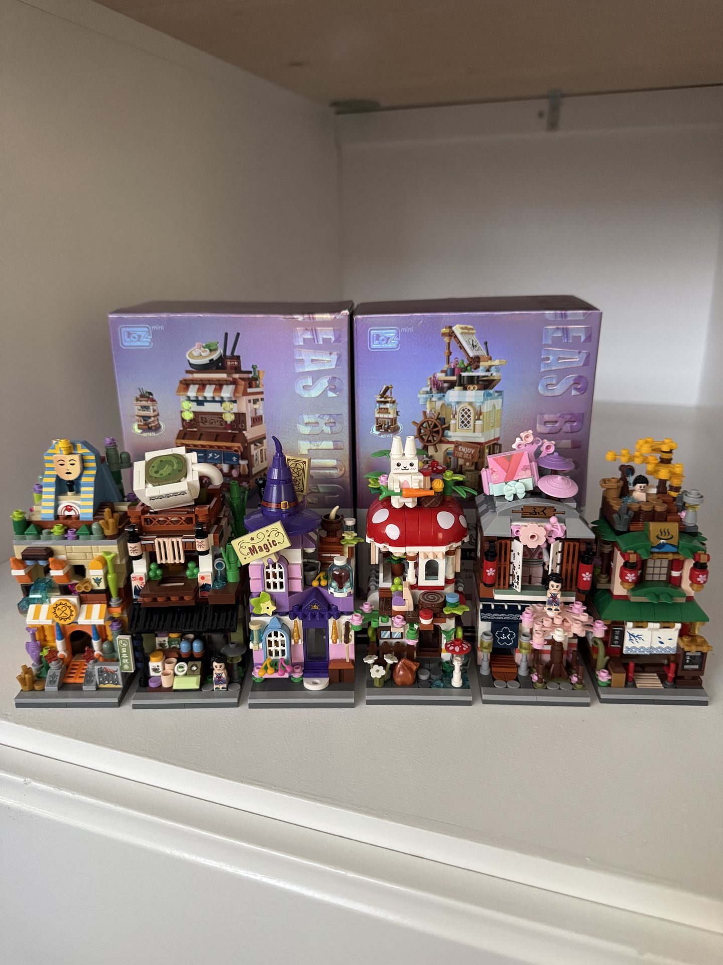 6/8 have been built. 2 are brand new in box. Includes instructions for all (can break apart and rebuild) and their original boxes. They are complete sets of 2 different series Not Lego brand.
