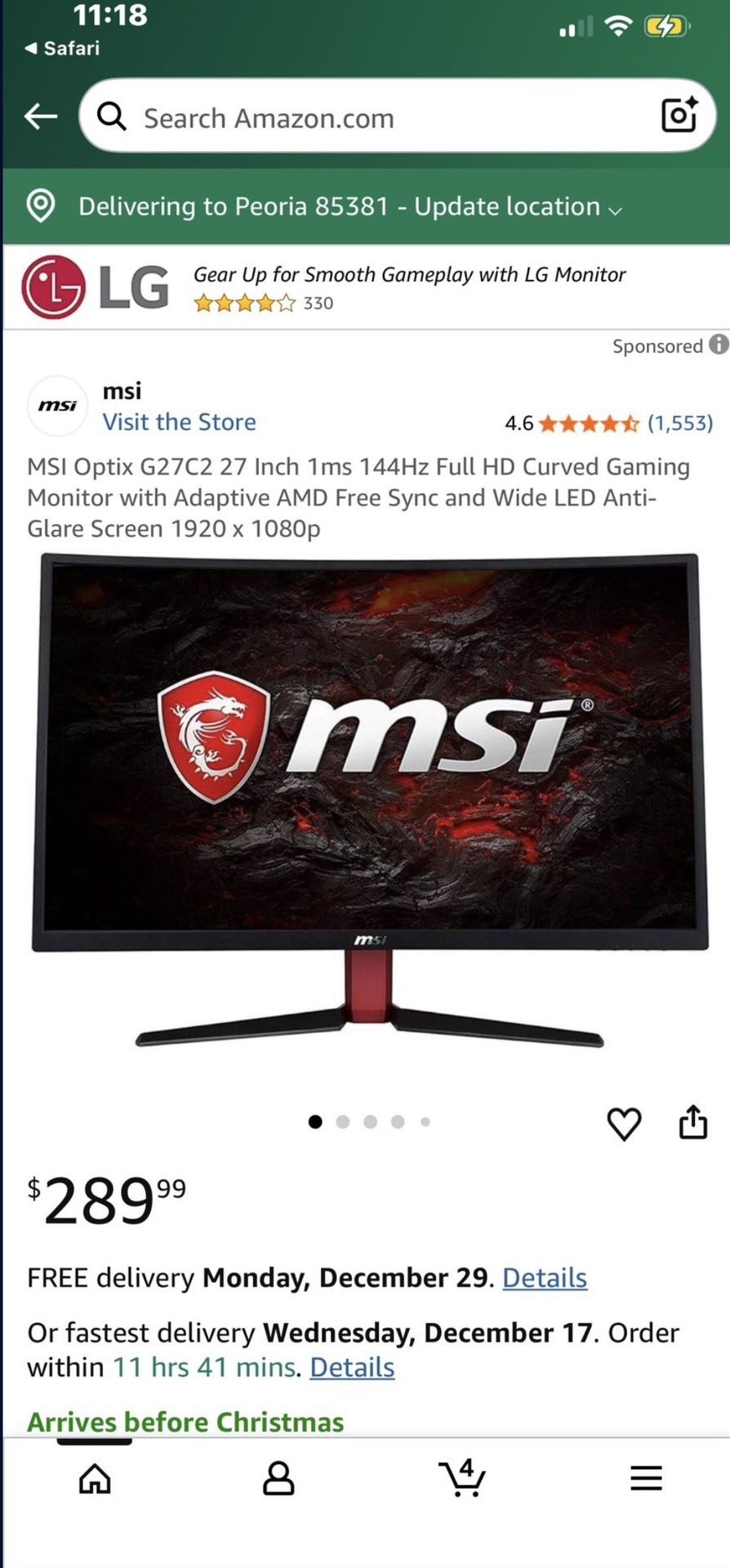 MSI Optix g27c2 Full HD curved gaming monitor 180$ great condition works great NEED GONE don’t play video games no more Pick up