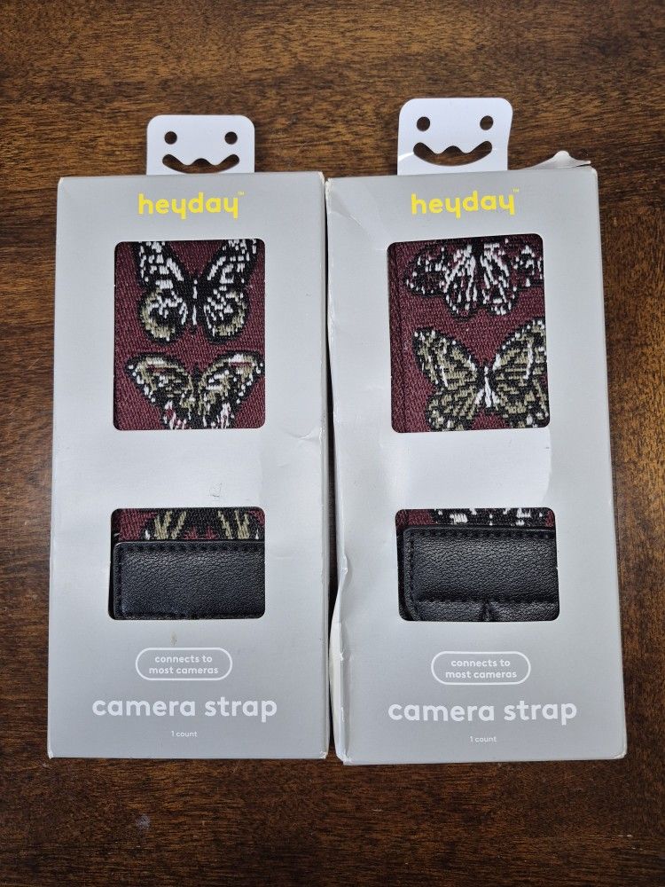 Heyday Camera Strap 2 Pack Embroidered Maroon Butterfly Adjustable New In Box