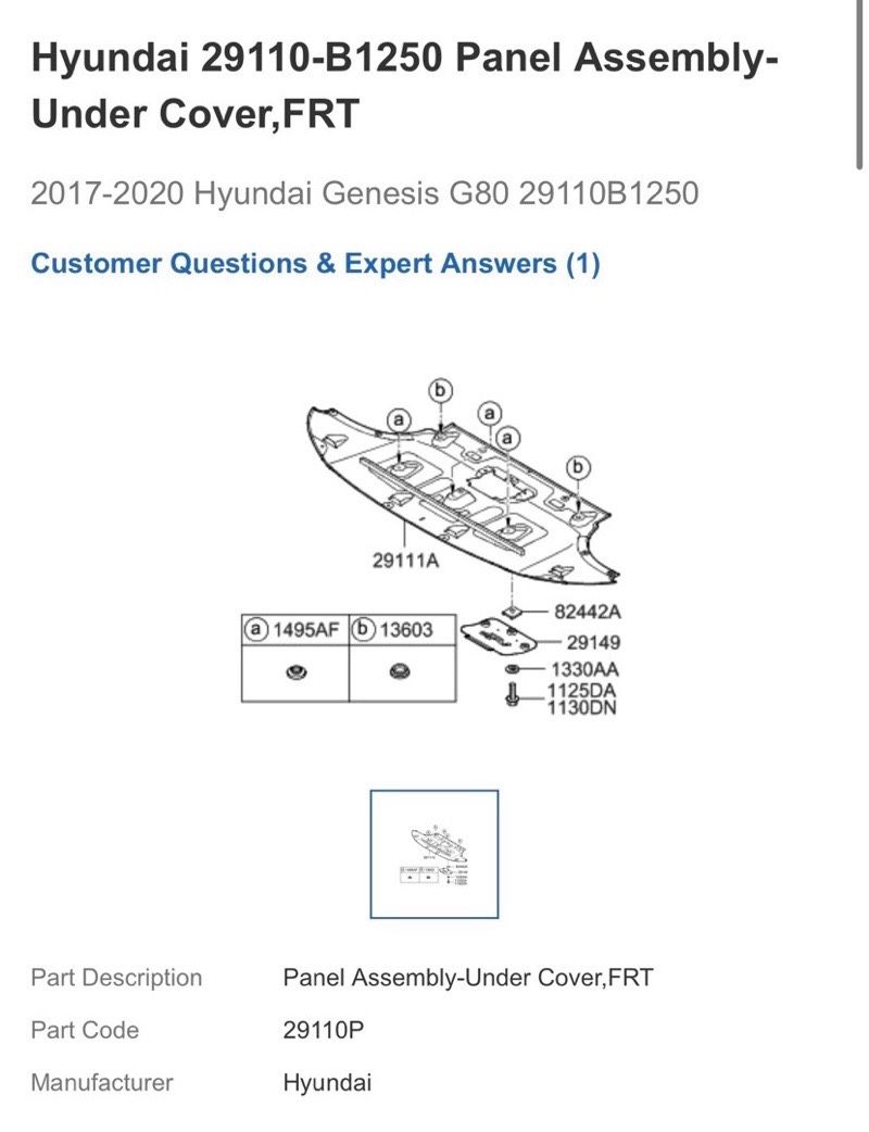 OEM 29110-B1250 Panel Assembly-Under Cover Engine 2017-2020 Hyundai Genesis G80