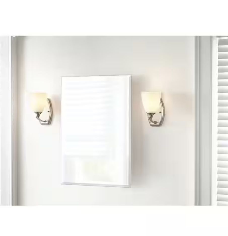 16 x 26 Glacier Bay Medicine Cabinet Recessed or surface Mount. Asking 20.00 Small scratch and chip at bottom corner, see pictures.