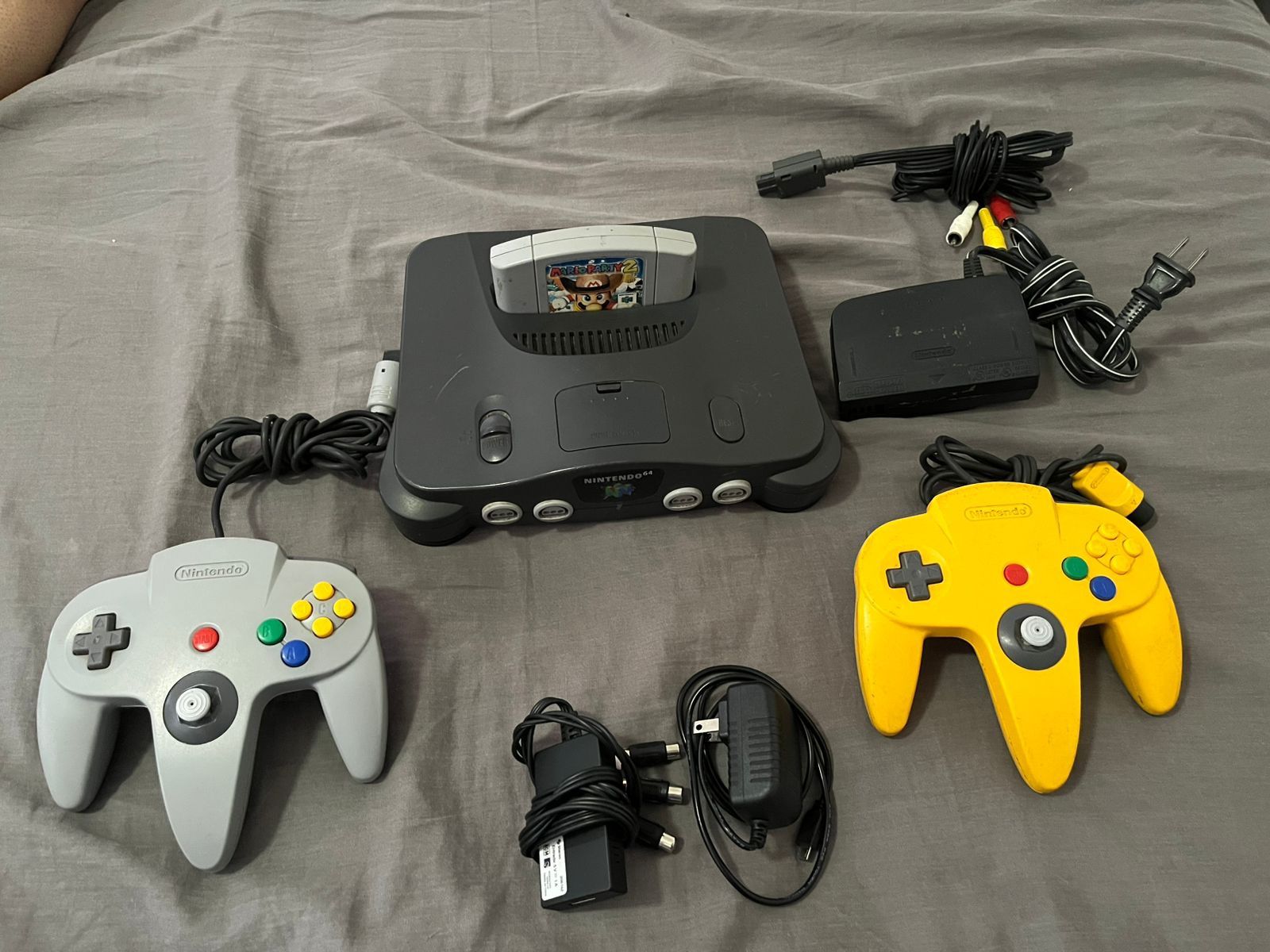 Nintendo 64 in working condition. Comes with all its cables and Mario Party 2. The 2 controllers have no drift and work well.