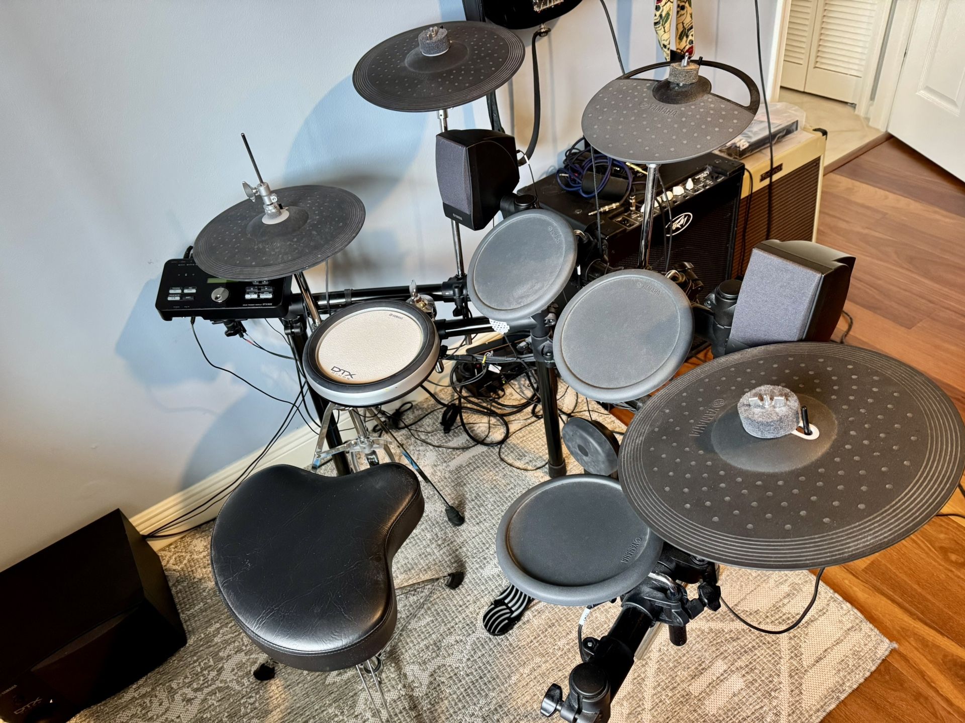Amazing drum kit from Yamaha! Great sound and quality. **Like new** includes all manuals, electronic module with 100’s drum kit samples, speaker set, subwoofer, multi-zone snare, 3-zone hi-hat, drum seat, and more! Priced to sell quickly. Great holiday gift to any drummer at any level. See it in action: https://offerup.com/redirect/?o=aHR0cHM6Ly95b3V0dS5iZS9sa0RTajFLdlZDaw== More: https://offerup.com/redirect/?o=aHR0cHM6Ly93d3cuY2hvcHNwZXJjdXNzaW9uLmNvbS9wcm9kdWN0P2l0ZW09RFRYNTMySy1ZQQ==