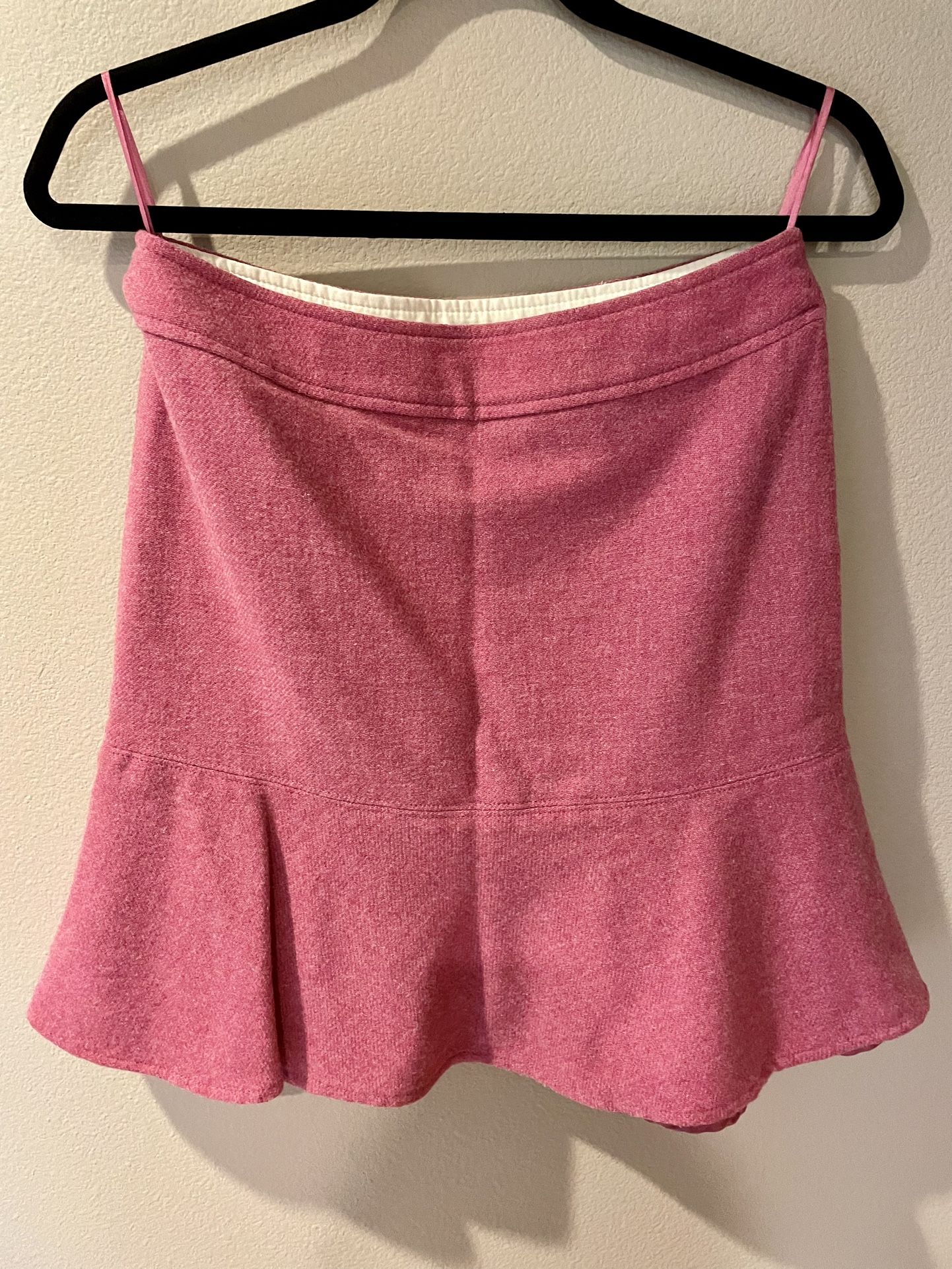 Beautiful pink wool GAP A line flounce skirt in excellent condition. Has side zipper and inner lining. Outer material is 90% wool and 10% nylon. Inner lining is 100% polyester