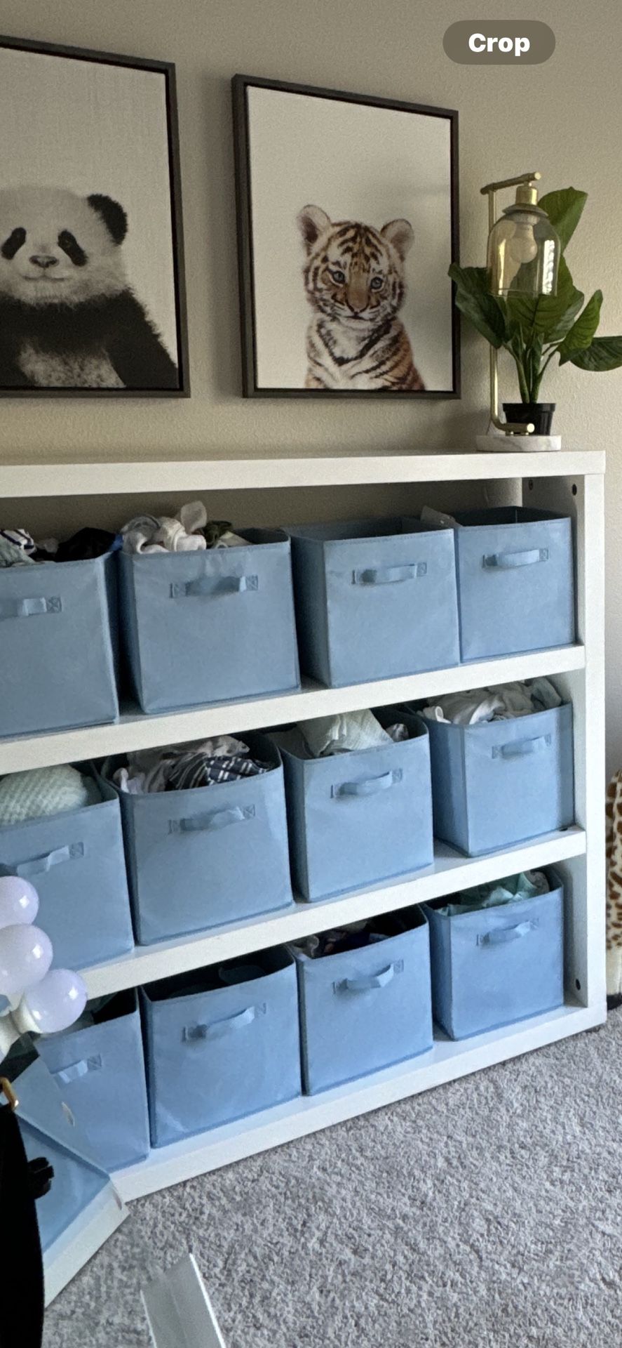 Great way to organize baby clothes comes with blue cubes shelve has a couple scratches but you cant tell it is acrylic good quality (: