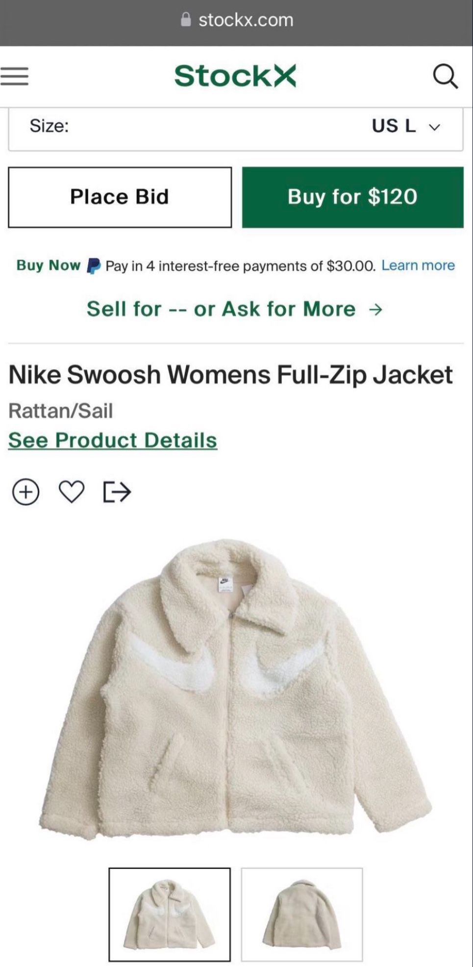 Nike Swoosh Women’s Sherpa Full Zip Jacket Sail Oversized fit Women’s Large — it can most likely fit a Men’s small/medium since it is an oversized fit