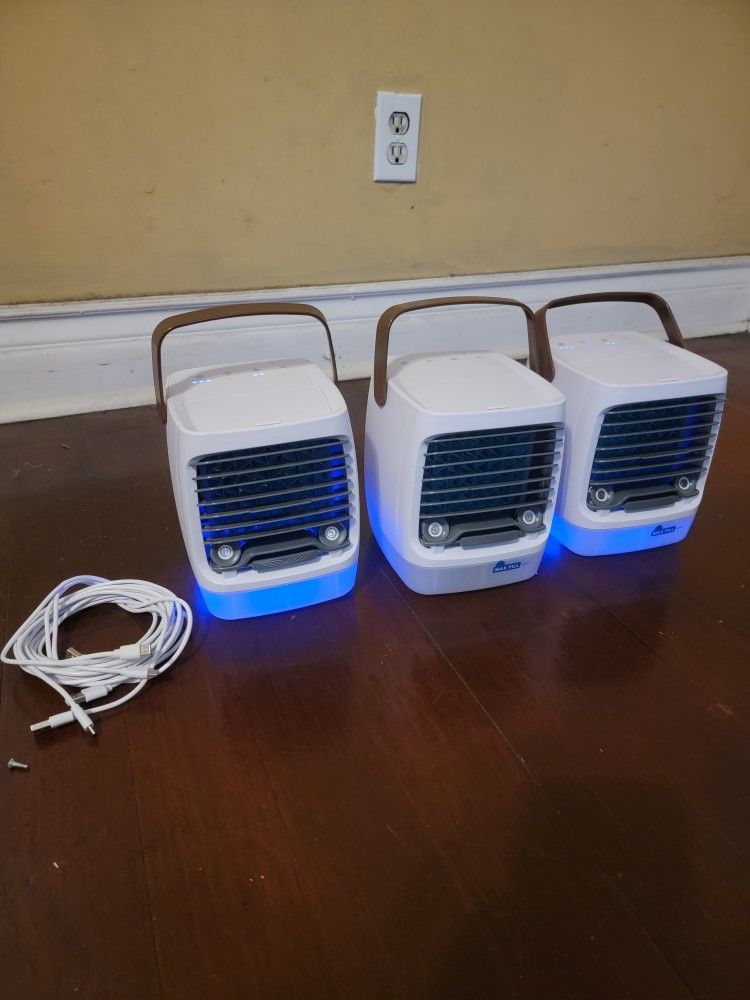 Great condition, they have 4 speeds,Humidifier indoor personal cooling units USB rechargeable selling all together asking $180.