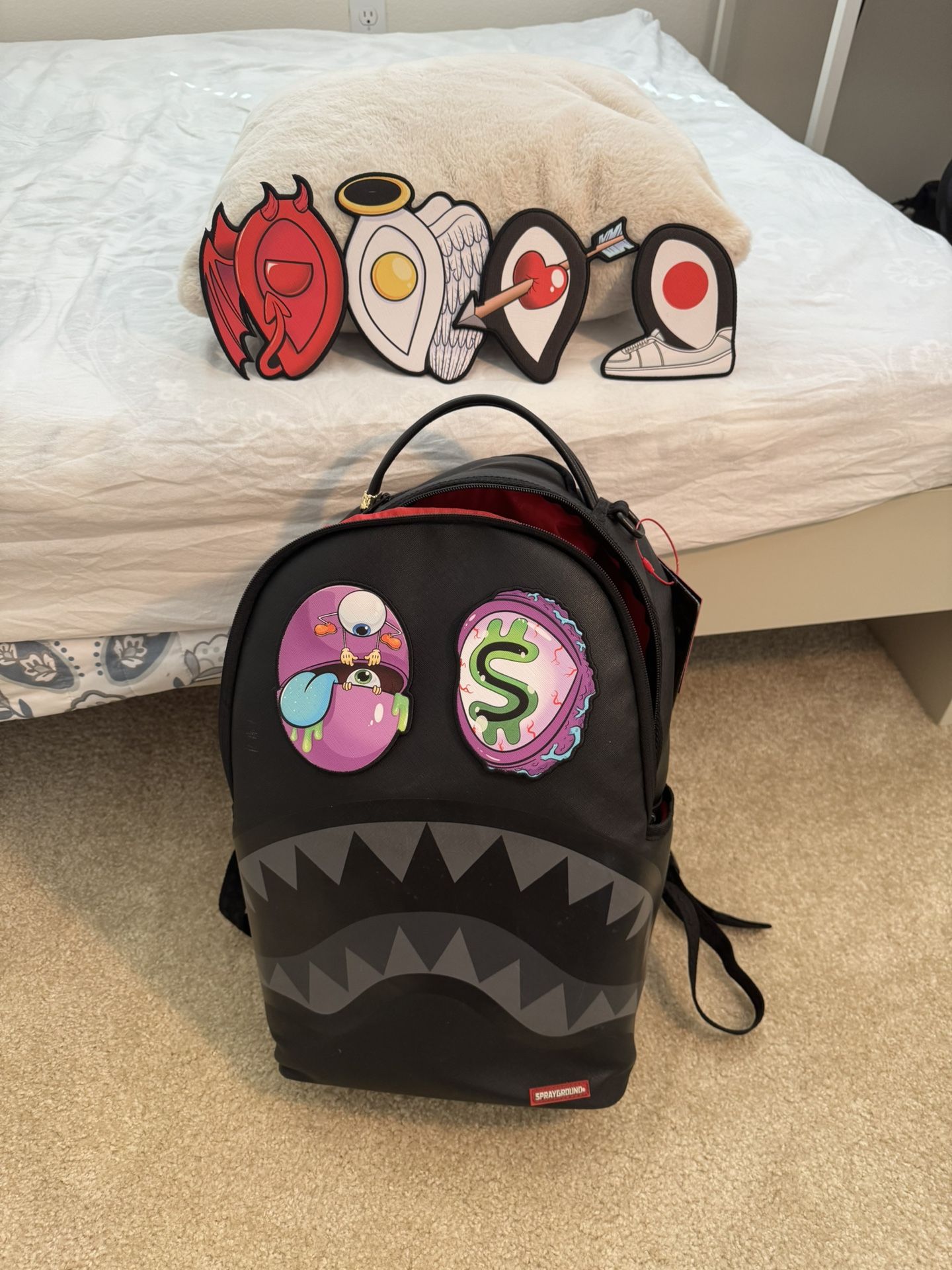 Sprayground shark backpack in good condition. No rips, zippers work perfectly. Inside has small washable marks. Clean exterior.