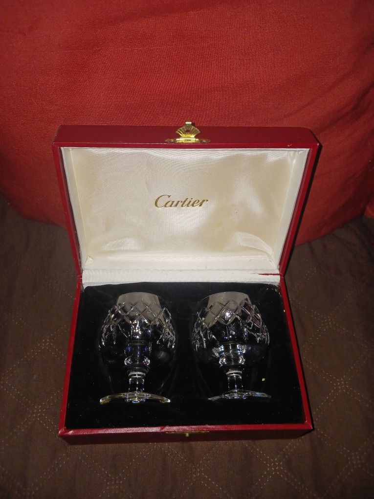 2 CARTIER CRYSTAL Ctc 3 Pattern Cut Glass Snifters $140
