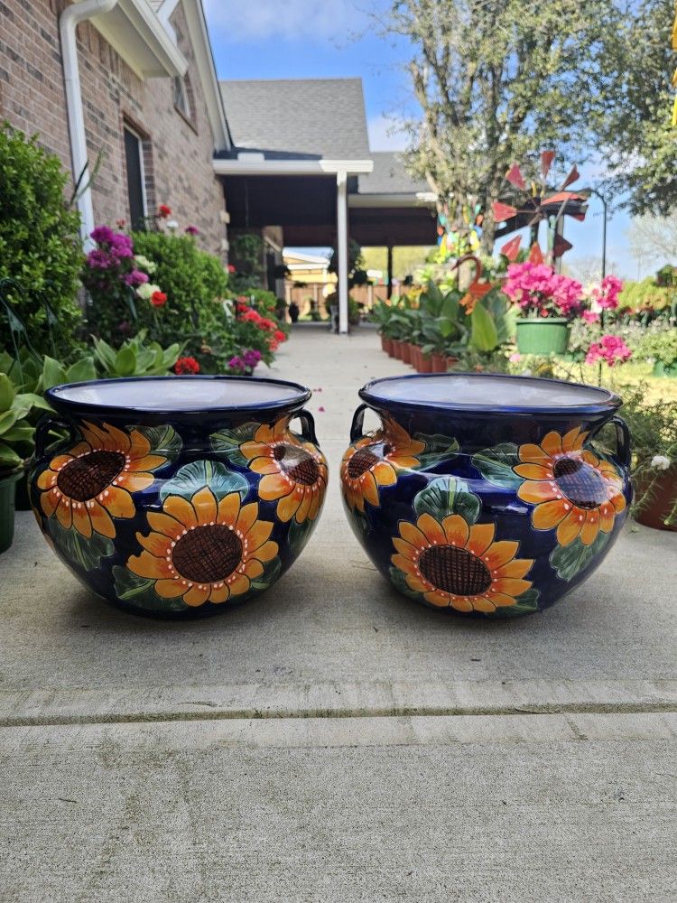 Talavera Sunflower Clay Pots. Planters. Plants. Pottery $60 cada uno