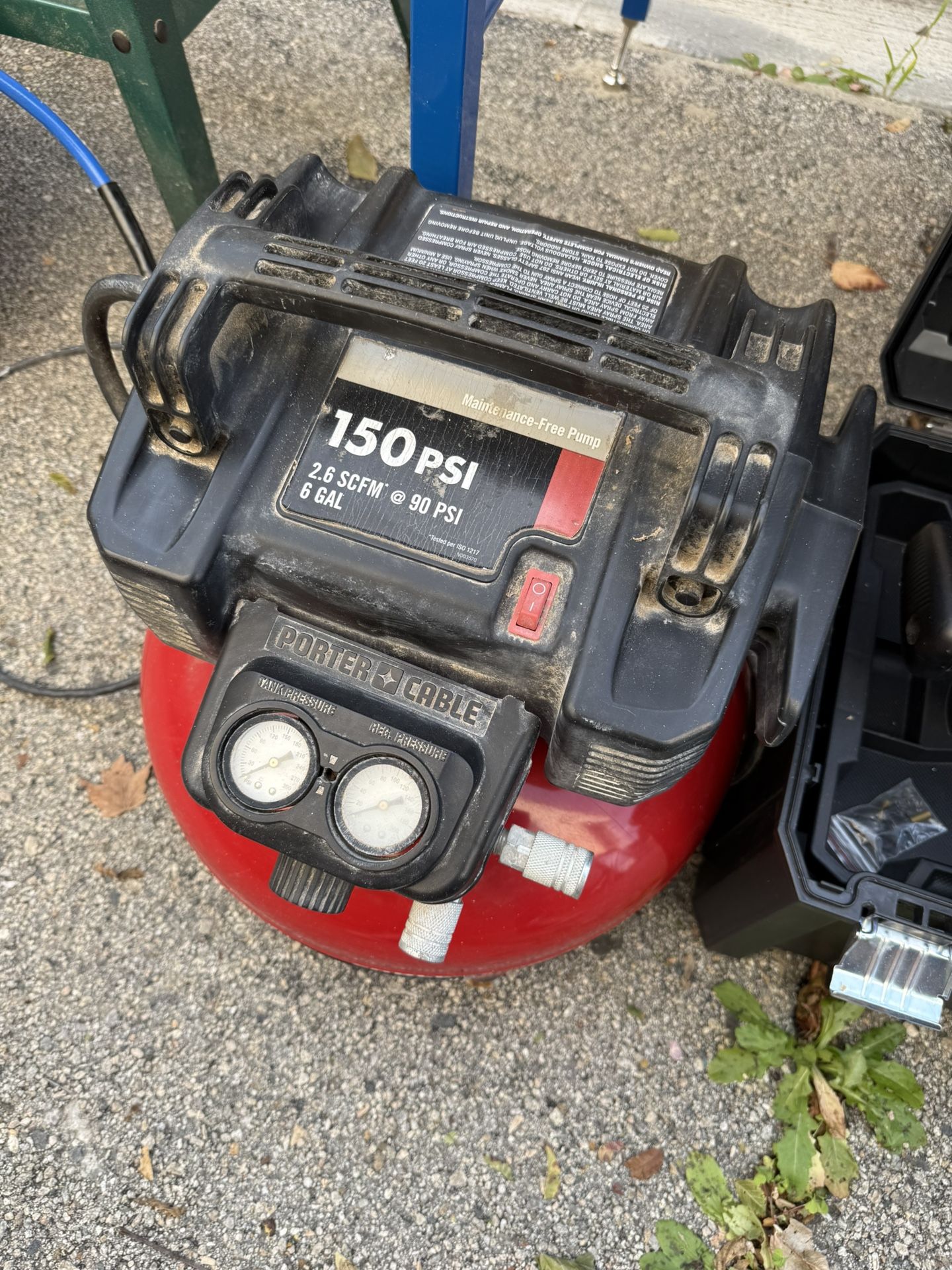 Porter Cable Air Compressor Bundle- Nail Guns, Hose Extension And Air Saw