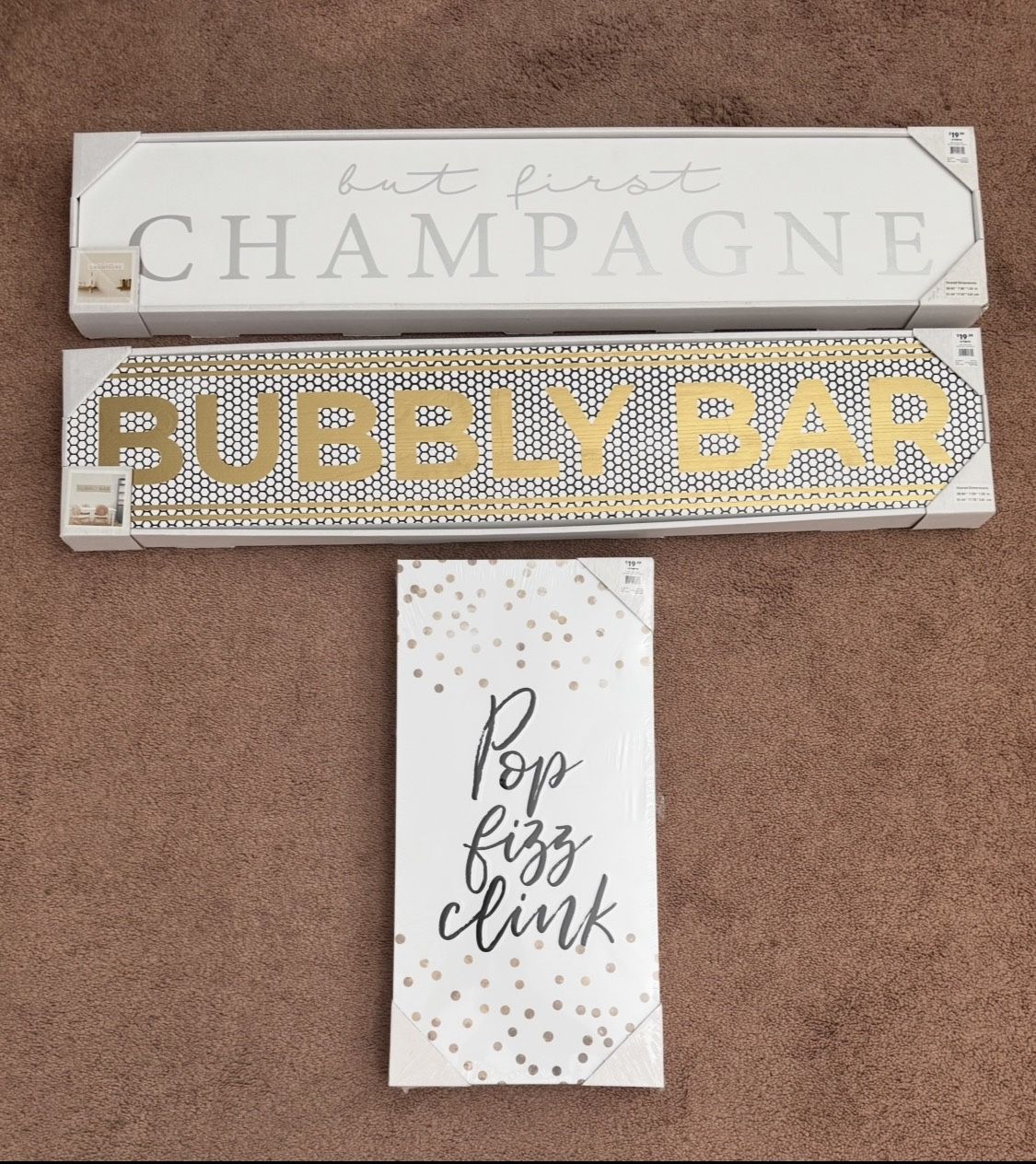 3 champagne related signs at $10 each. Take all 3 for $30