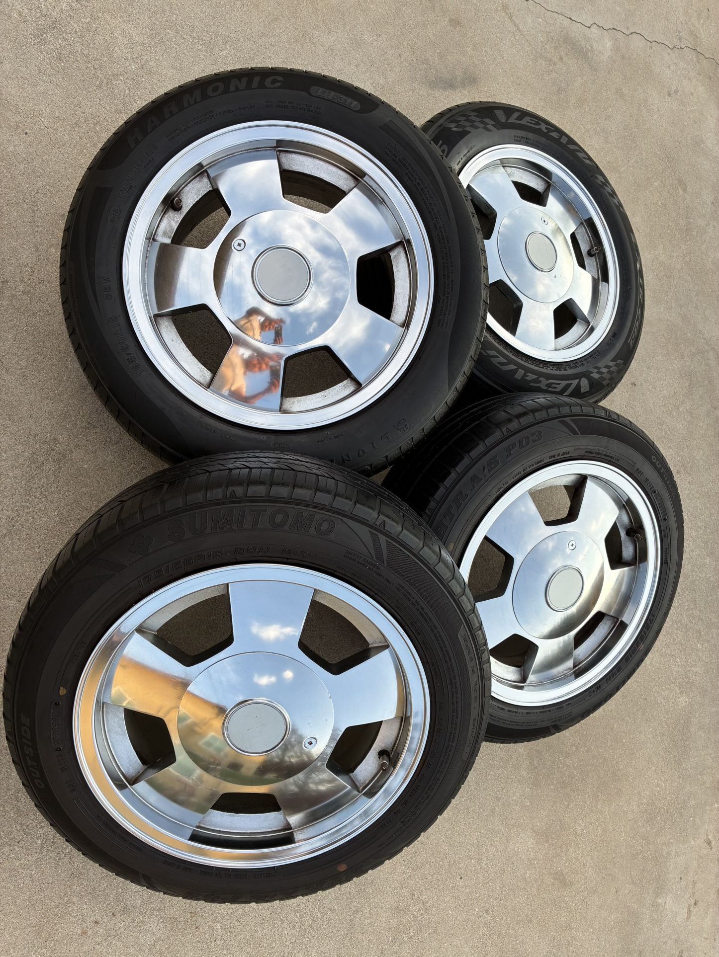 Rims bmw wheels rines 5 lugs universal 15x7 tires 195/65/15 thread 70% 5x120 - 5x108 lug pattern All 4 in good condition good shape too No cracks No leaks air $400 for all 4