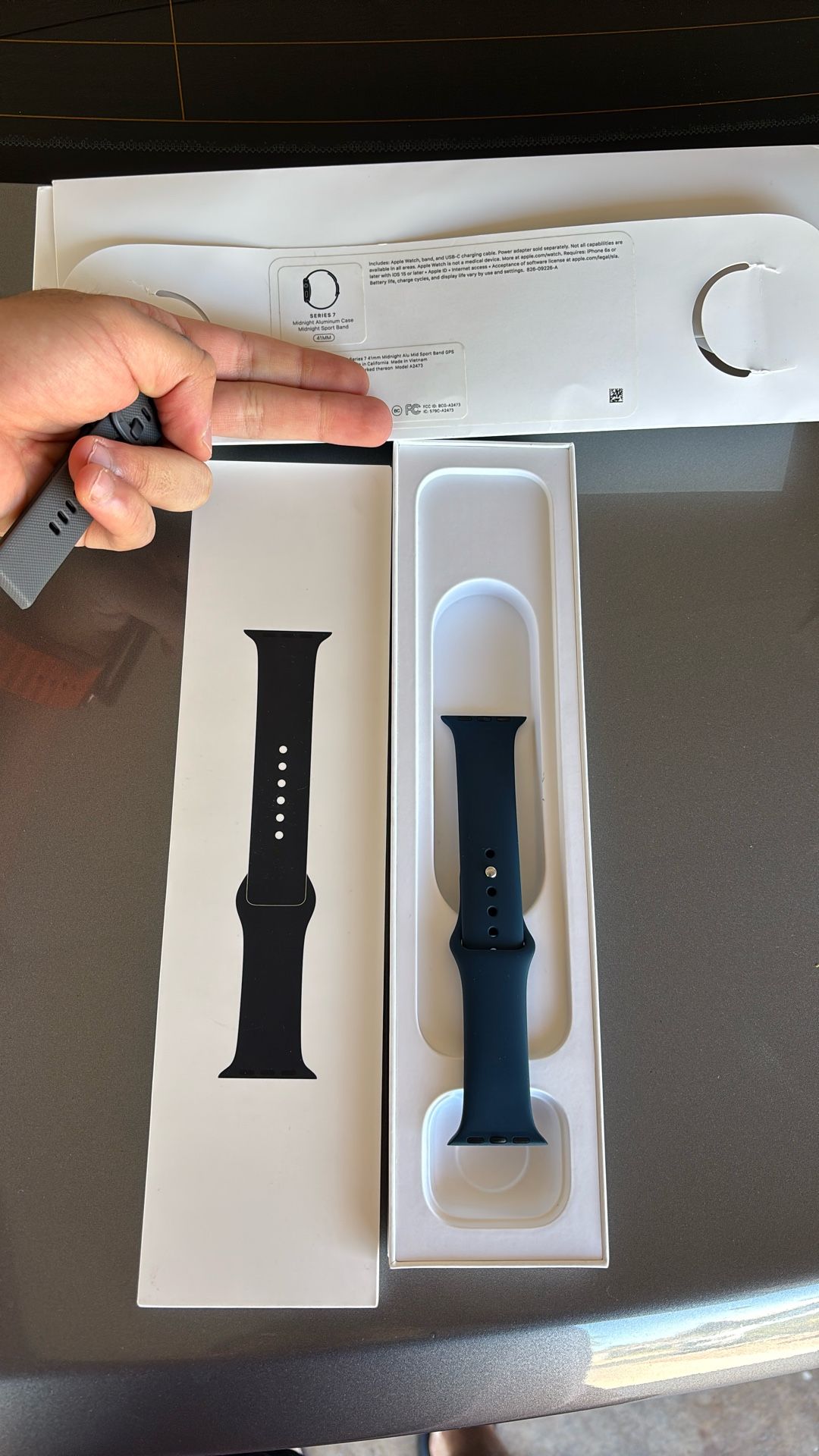 1 is brand new in box, the other is in great condition Brand new from Apple this goes for $49 My new one I’ll do for $40. New graphite stainless steel sport band Navy sport band Used $30 Authentic products I don’t know the size of band